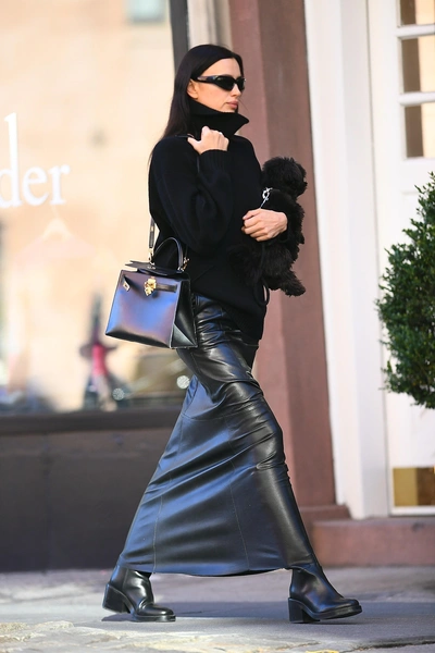 Ирина Шейк гуляет с собакой с сумкой Kelly