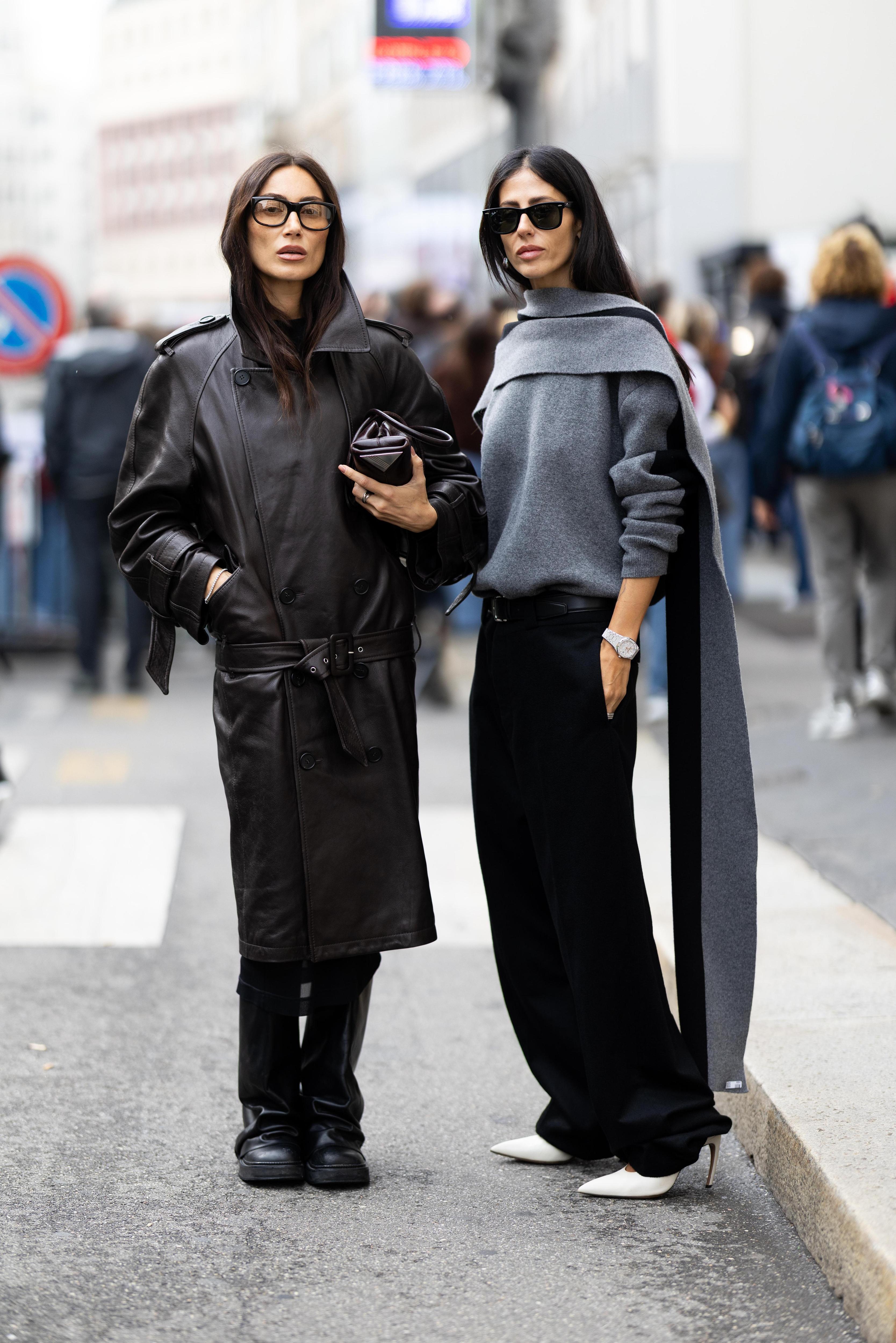 Вдохновиться можно и примером итальянского дуэта Джорджии Тордини и Джильды Амброзио, создательниц бренда The Attico. Девушки известны умением сочетать строгость и уличную эстетику — и в этот раз тоже не изменили себе. Джильда выбрала длинный серый шарф, накинутый поверх вязаного свитера в тон, так что ткань ложилась на плечи мягкими складками и повторяла движение тела, а концы почти касались пола.