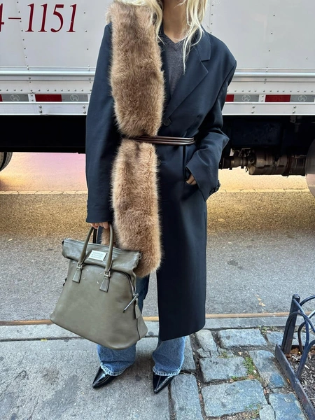 Такой пояс сразу решает несколько задач. Во-первых, структурирует силуэт. Даже оверсайз или скульптурное пальто перестает выглядеть громоздким. Во-вторых, добавляет индивидуальность: два одинаковых пальто с разными поясами выглядят как разные вещи. И в-третьих, обновляет гардероб без покупок — ты буквально пересобираешь уже знакомую вещь.