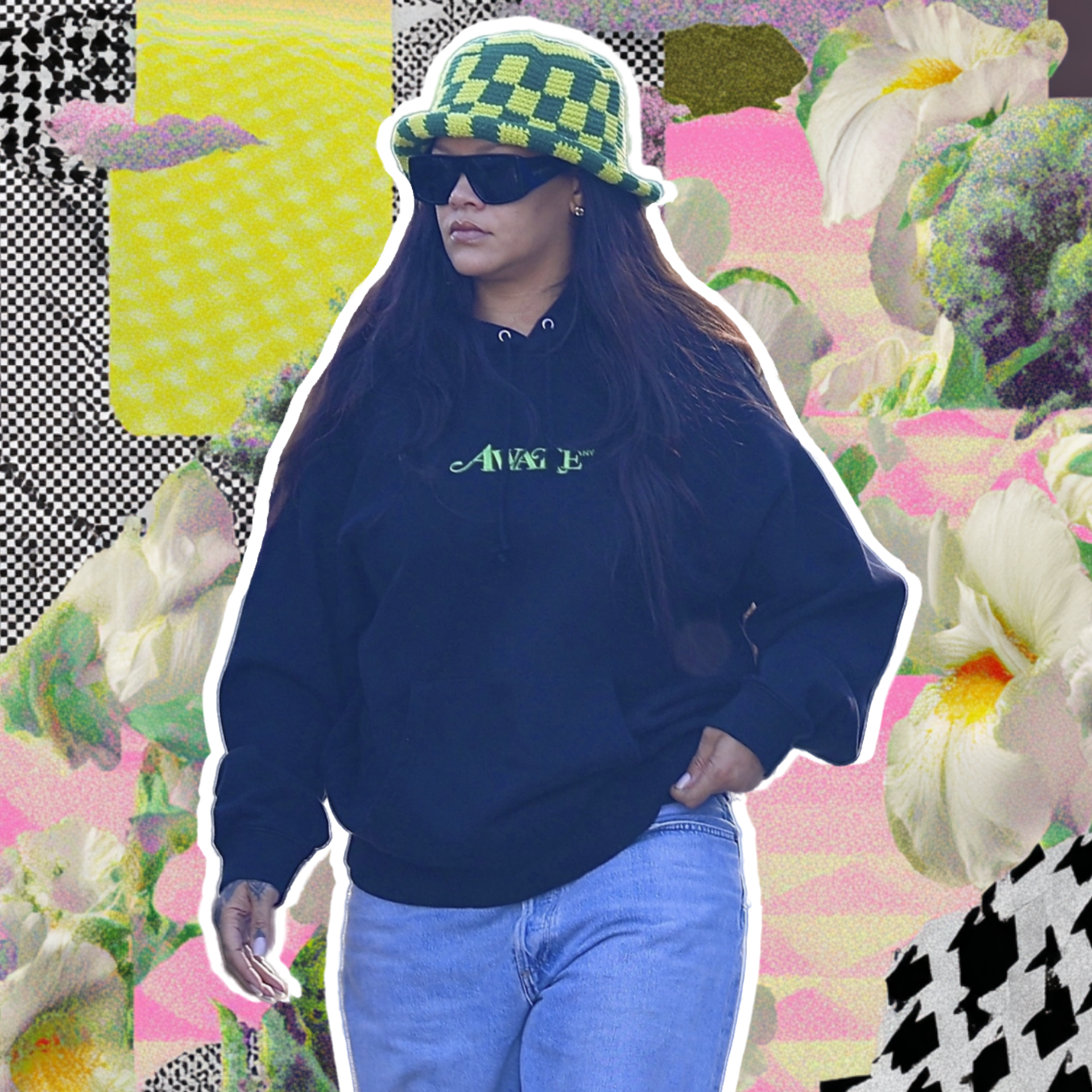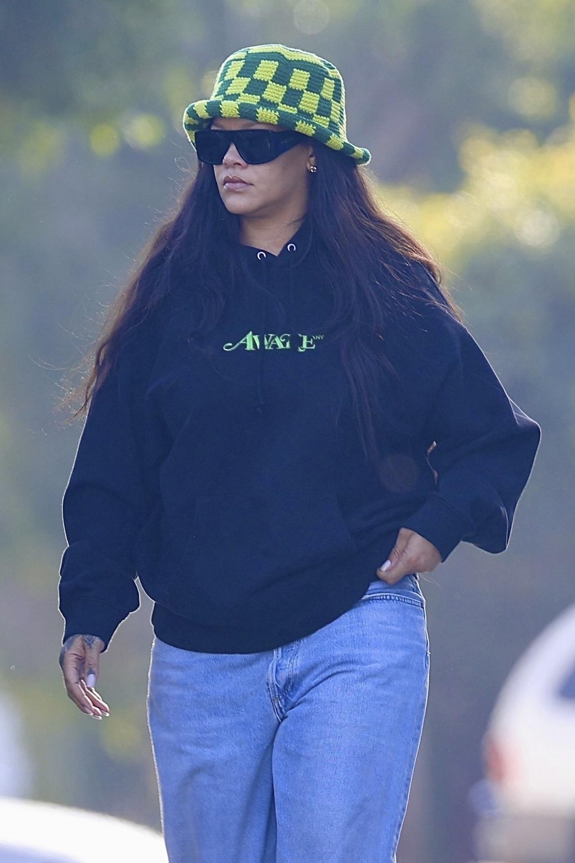 На улицах Лос-Анджелеса Рианна появилась в образе, который идеально балансирует на грани небрежной расслабленности и продуманной театральности. Именно в таких, казалось бы, случайных выходах и рождаются главные тренды. Центром ее лука стала не яркая блуза или дизайнерская сумка, а броская вязаная панама в желто-зеленую шашку. Этой одной детали оказалось достаточно, чтобы поднять самый простой наряд на уровень высокой моды. Панама добавила образу уникальности, легкой ироничности и ретро-нотки.