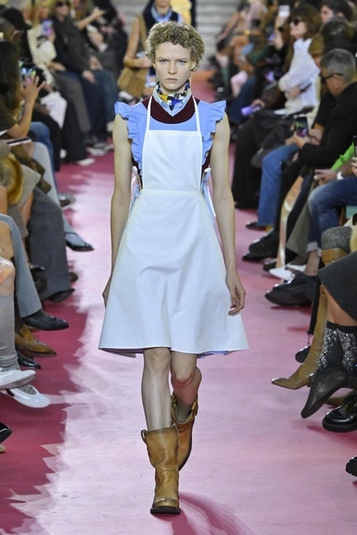 Весна 2026 окончательно закрепляет за собой сапоги с не слишком высоким и достаточно свободным голенищем. Чаще всего — на плоской подошве или с минимальным каблуком. Легкая потертость кожи только приветствуется: она добавляет характер. Эти сапоги легко носить с платьями, юбками, шортами и даже заправленными внутрь джинсами.