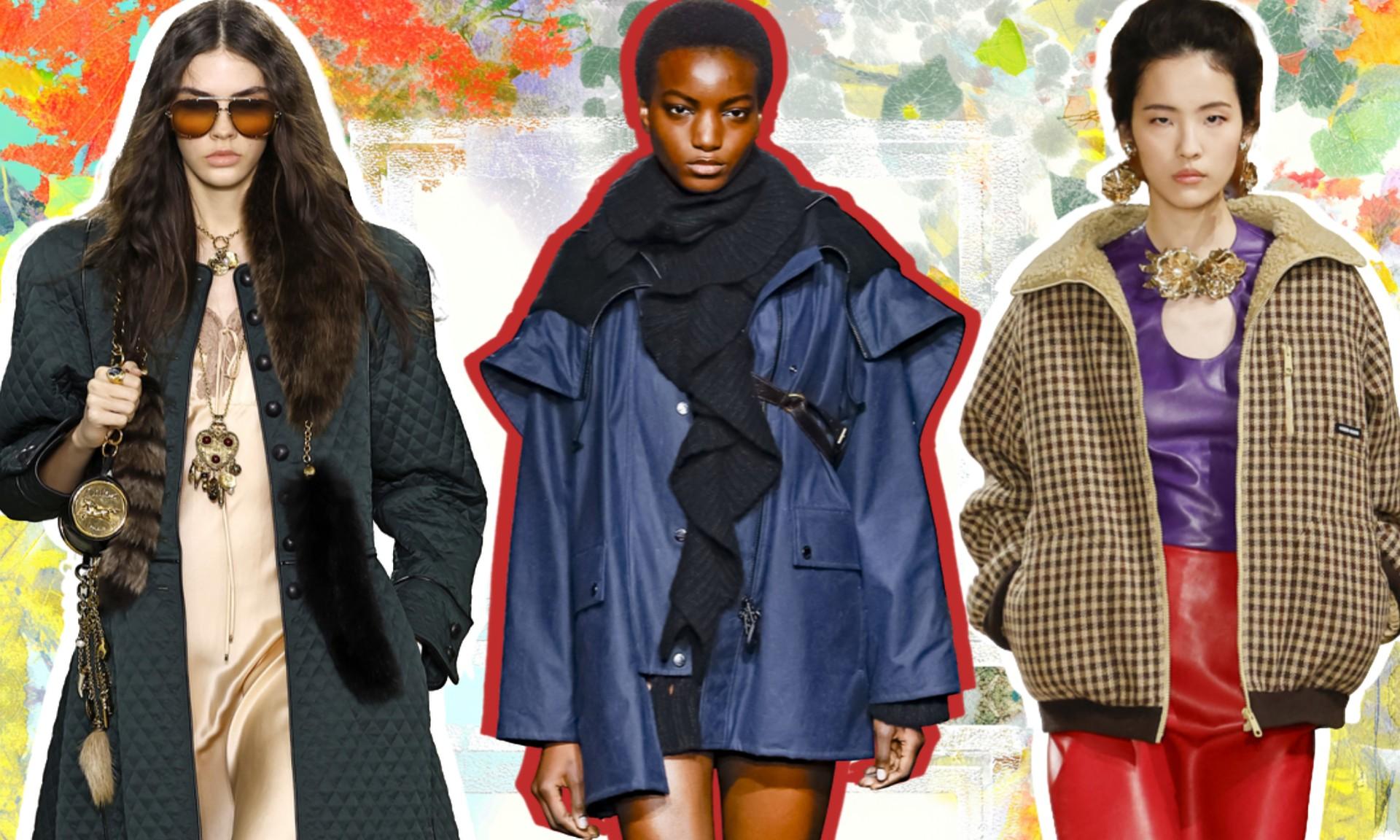 Если ищешь что-то сдержанное, но элегантное — драп тебе в помощь. Посмотри на Miu Miu: их серая куртка выглядит как воплощение парижского минимализма. Она легко впишется в классический образ, но не потеряется и на вечерней прогулке по городу.