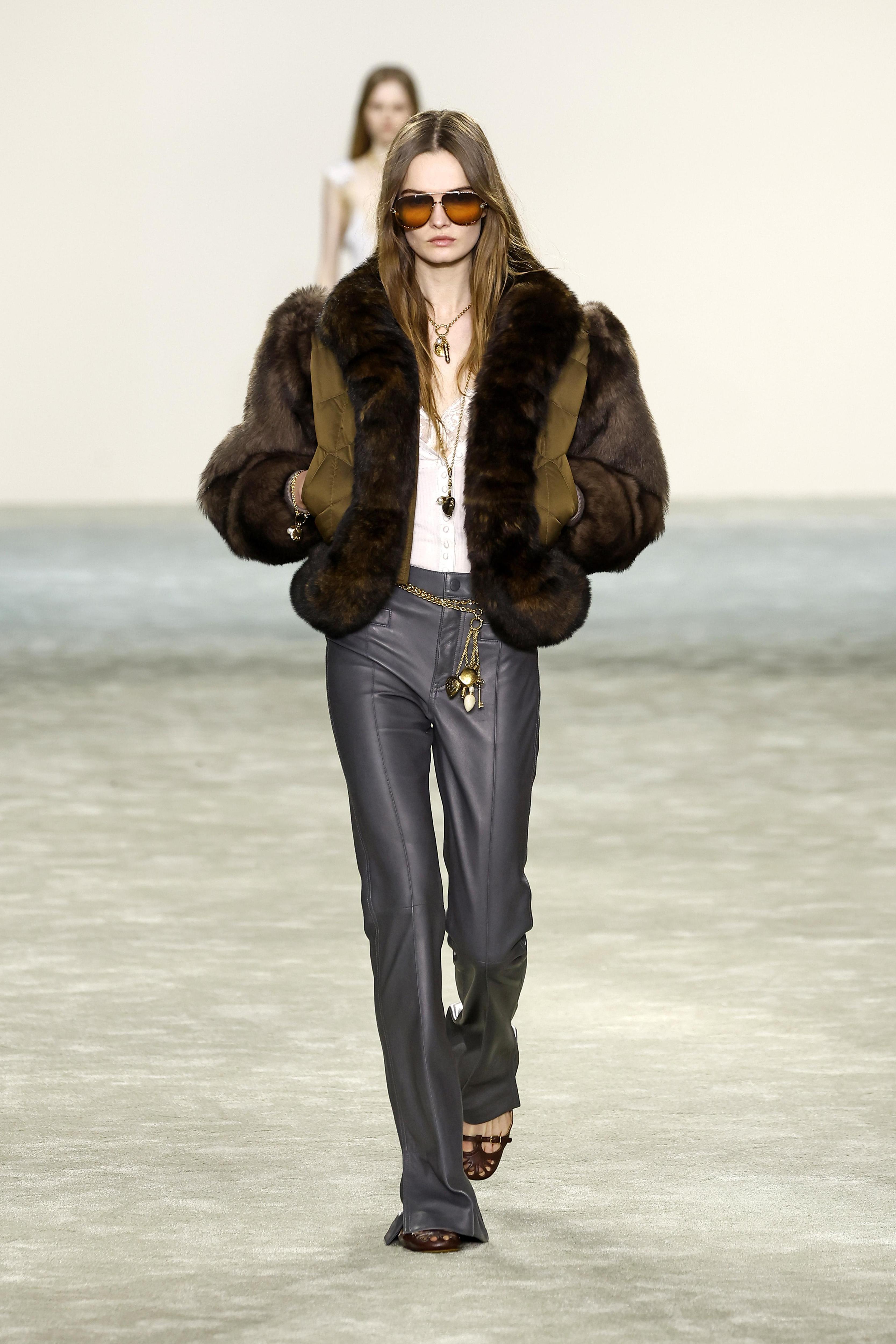 Мягкая, матовая, с бархатистой поверхностью — замша будто создана для октября. У Ralph Lauren и Fendi можно увидеть теплые карамельные оттенки и расслабленные, свободные силуэты. Такая куртка будет жить в гардеробе годами и никогда не выйдет из моды.