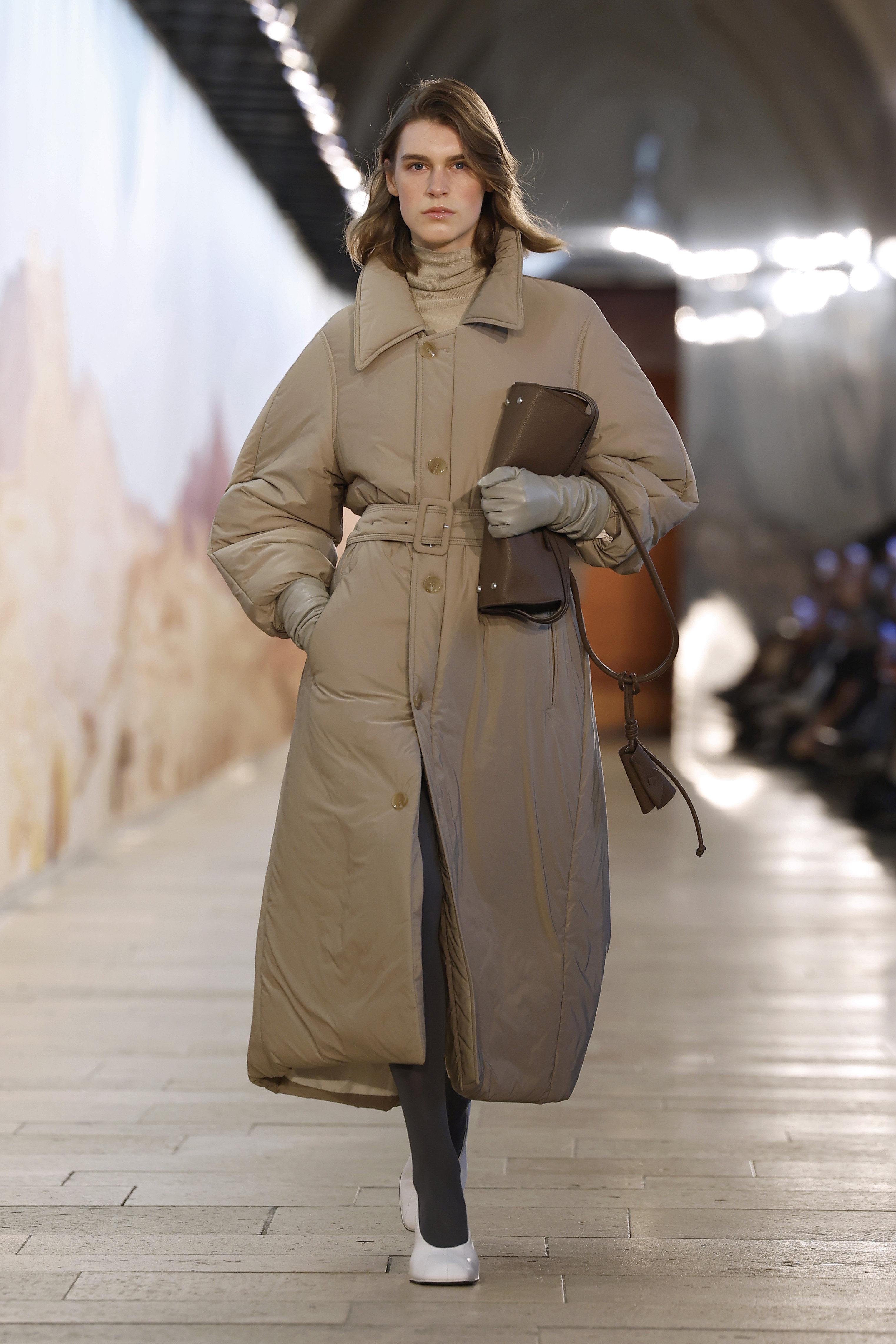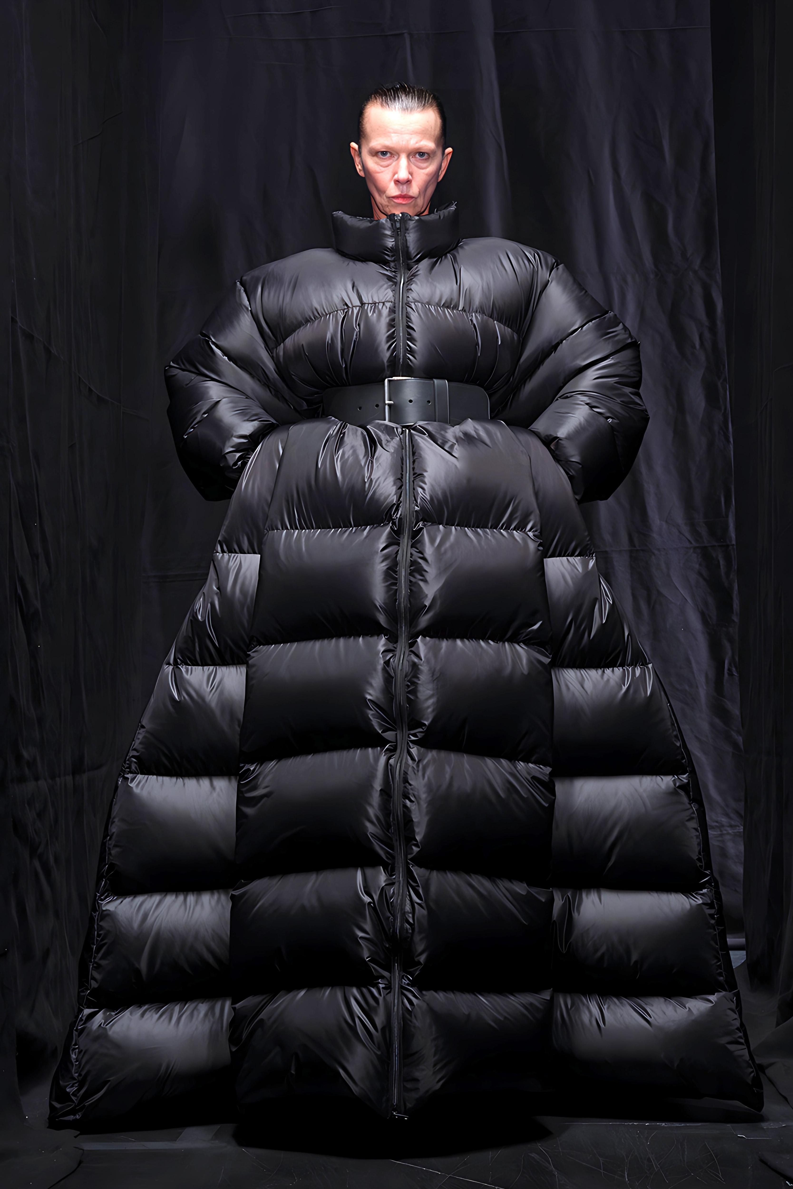 Зимняя коллекция Balenciaga, еще под руководством Демны Гвасалии, в своем репертуаре придерживается принципа: «в объеме есть сила». Эти огромные пуховики до пола — не просто одежда, а своего рода броня от зимы. Драпированные, мягкие, иногда похожие на пышное платье или даже скорее гигантское одеяло, они придают силуэту монументальность и утонченность одновременно. Такие модели выбирают те, кто ценит комфорт и эффект — в них можно исчезнуть от холода и взглядов, при этом выглядеть современно и уверенно.