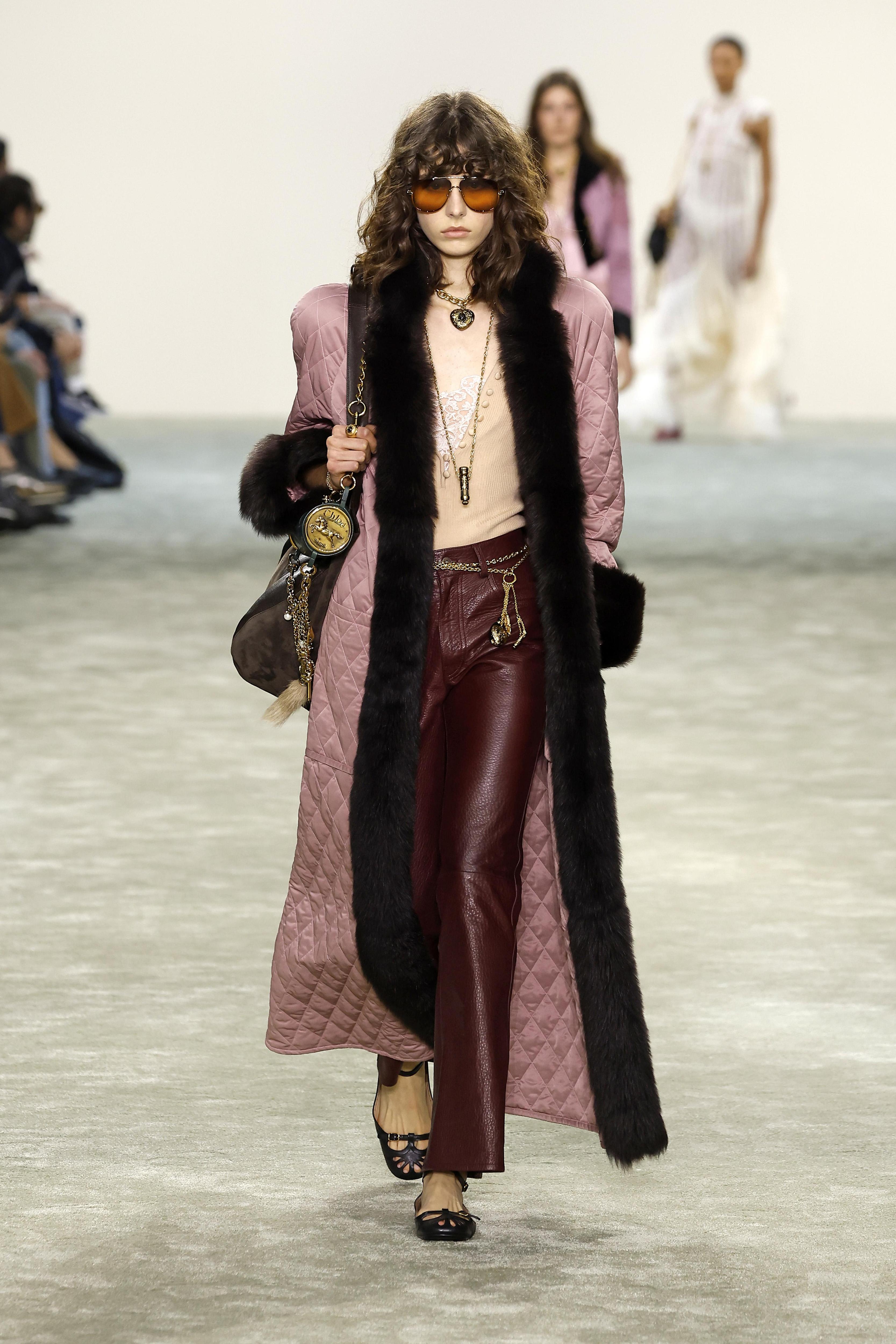 Фигурная стежка — еще один тренд, который не сдает позиций. Этой зимой в моде не только горизонтальные линии, но и геометрия: ромбики, волны, узоры, напоминающие ручную работу. Особенно актуальны длинные стеганые пуховики, которые закрывают ноги до середины голени и ниже. Они подчеркивают стройность и выглядят элегантно даже в объемных моделях. Например, Chloe использует мелкую ромбовидную стежку по всей длине, что добавляет образу графичности и шика.