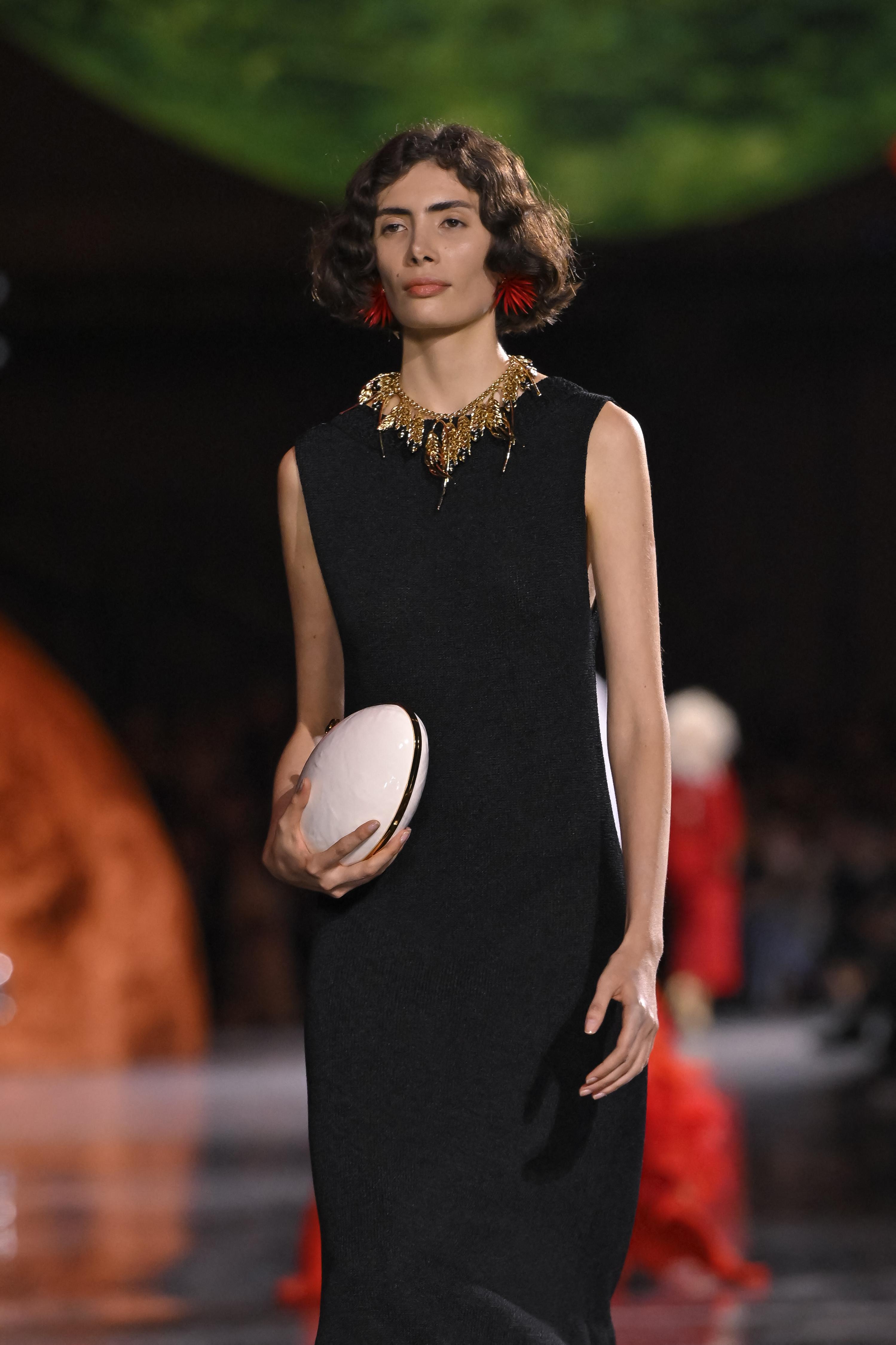 Четкие формы никуда не исчезают, но приобретают более скульптурный характер. Клатчи в форме эллипса, яйца или круга выглядят как арт-объекты и сразу задают высокий градус образу. Такие сумки чаще всего небольшие, но именно они способны сделать даже самый простой наряд более собранным и продуманным.