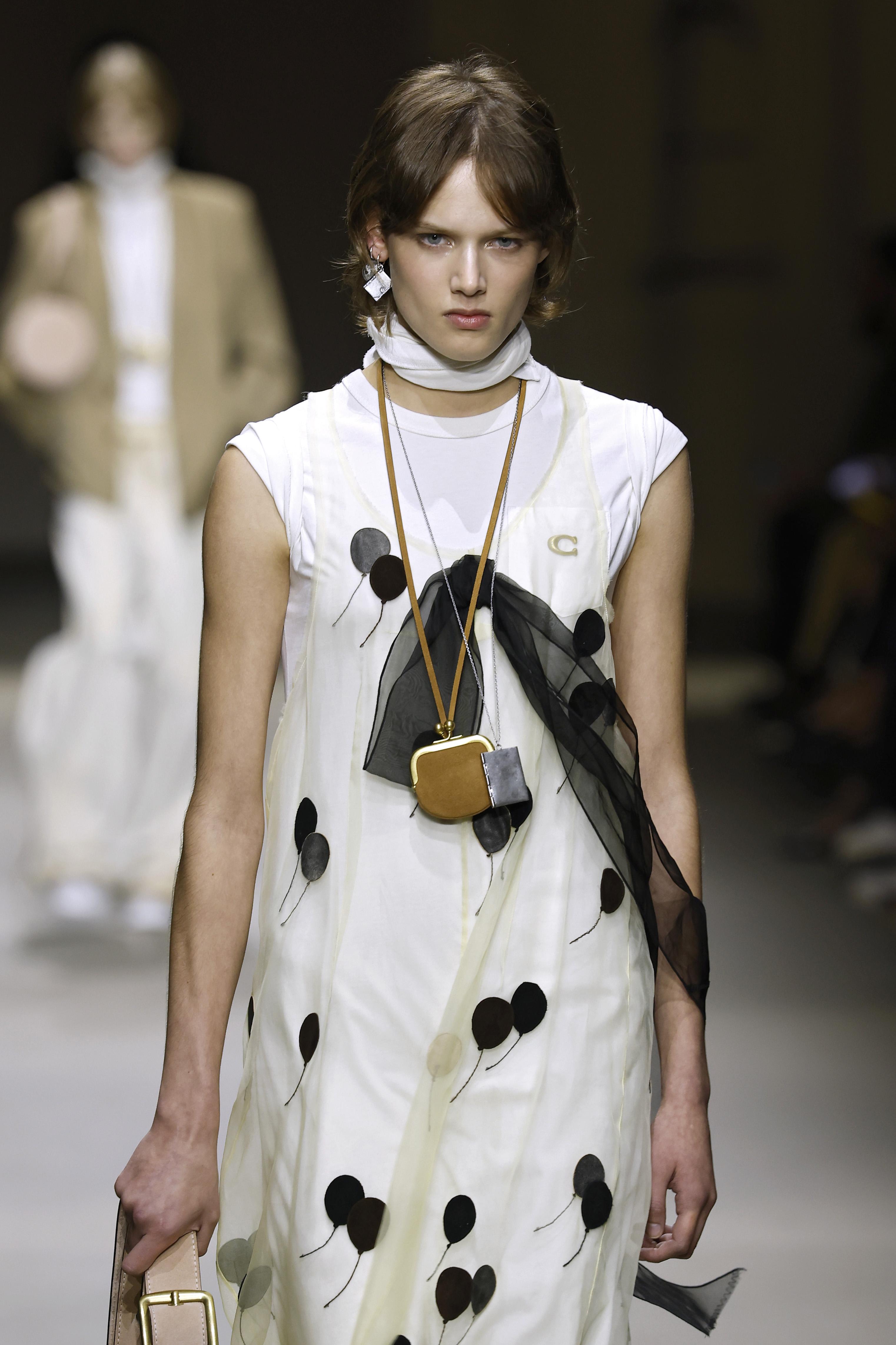 Миниатюрные сумки на шнурке, которые носят на шее как украшение, по-прежнему в игре. Это скорее декоративный элемент, чем полноценный аксессуар, но именно за это их и любят. Они добавляют образу оригинальности и хорошо работают в многослойных весенних сочетаниях.