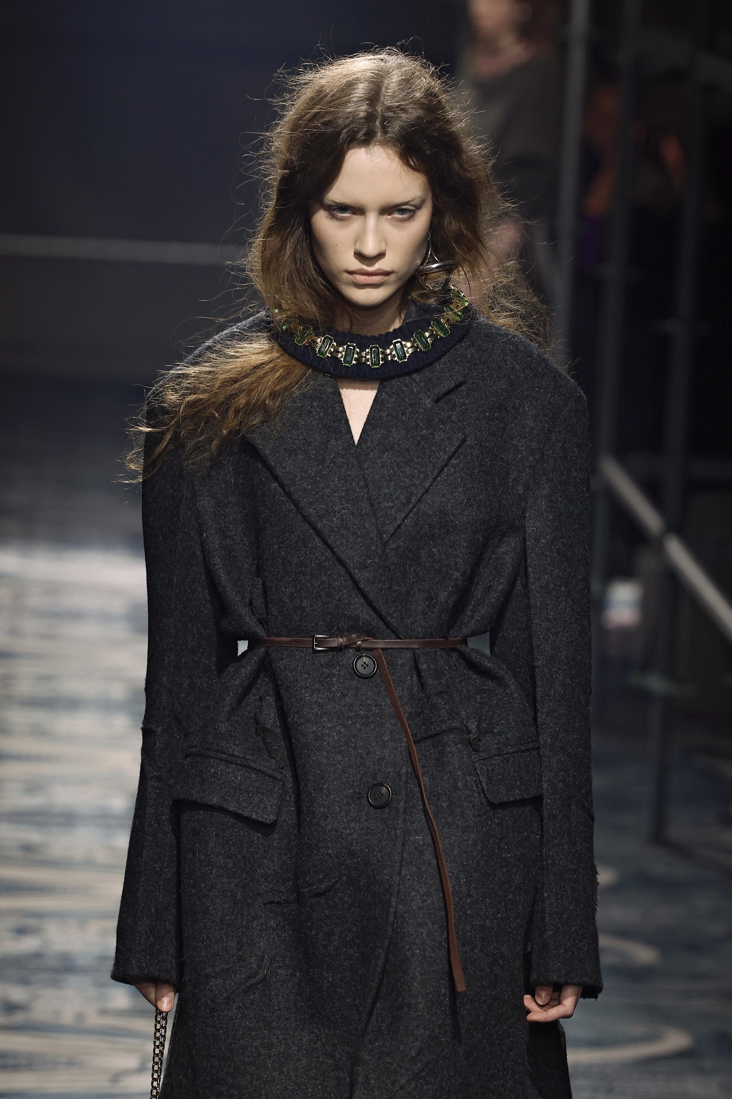 Броши переживают настоящий ренессанс. В коллекции Miu Miu их прикалывали к пушистым пальто, шляпам и другим аксессуарам. А в Prada та же Миучча Прада в паре с Рафом Симмонсом предложили игривые булавки с длинными подвесками, свисающими с воротников джемперов и топов — немного иронии и много стиля.