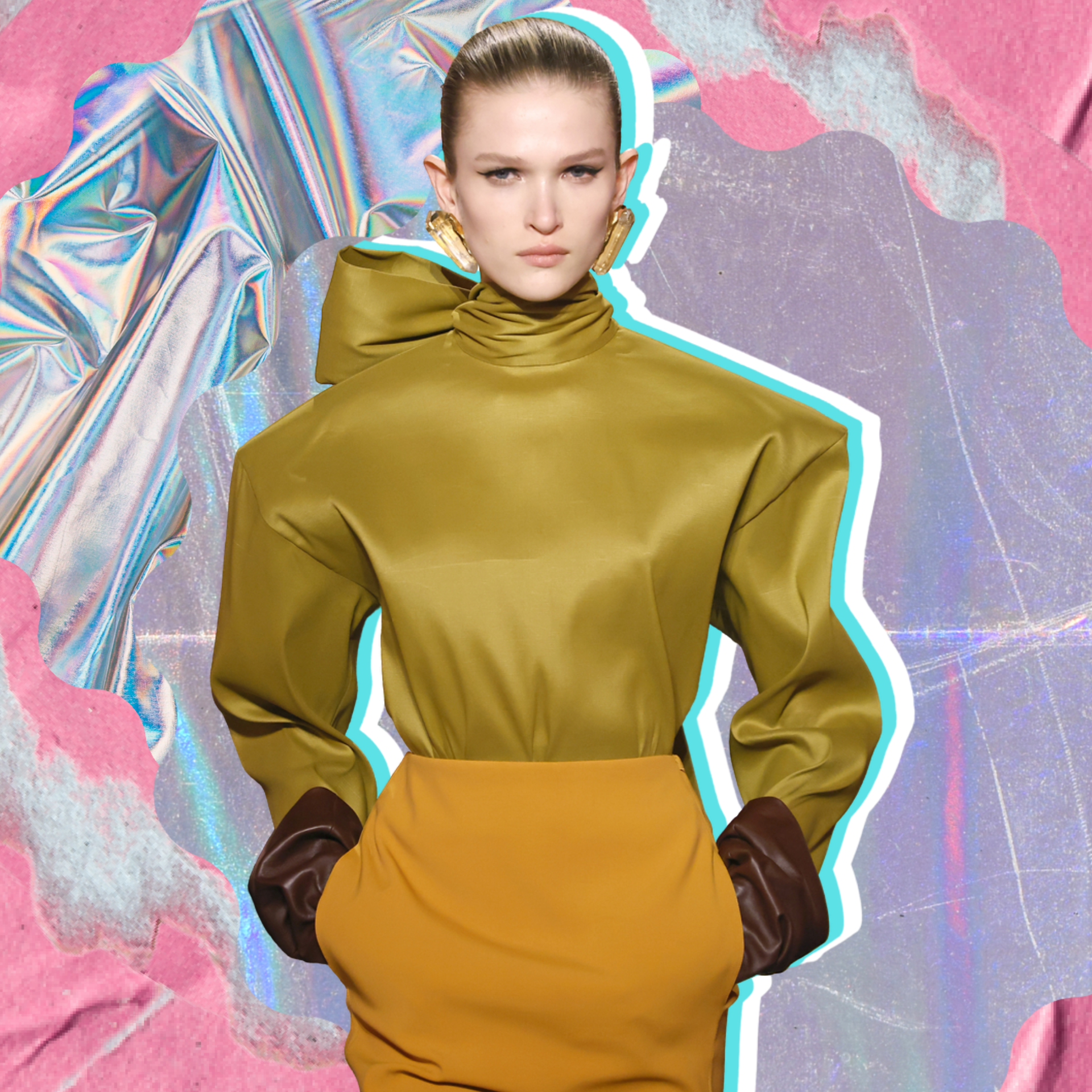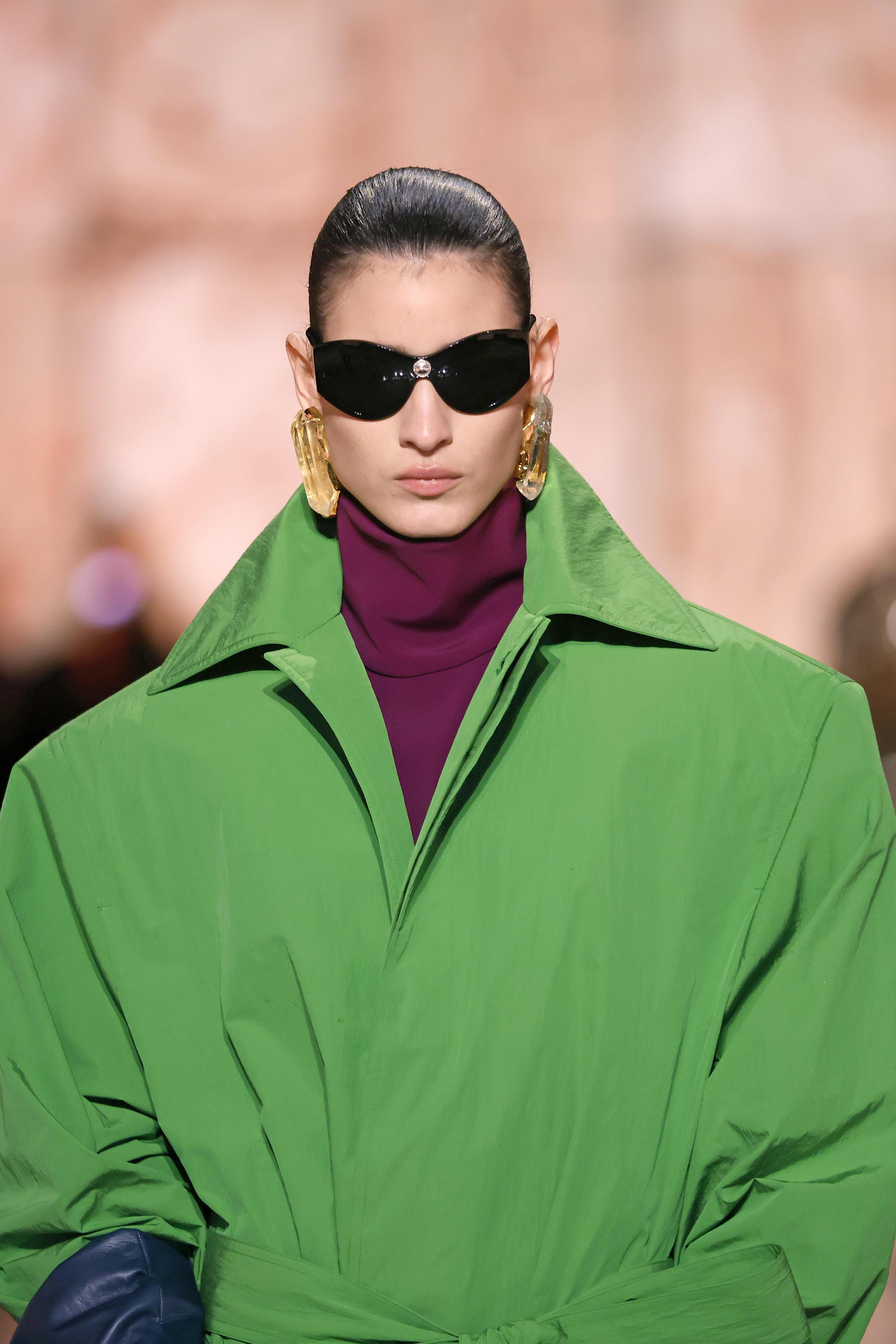 Серьги стали не просто украшением, а главным акцентом образа. В коллекции Saint Laurent, например, Энтони Ваккарелло и вовсе сделал их похожими на глыбы цветных кристаллов: крупные, скульптурные, увесистые, будто созданные из стекла и света одновременно. Такая пара легко справляется с ролью и аксессуара, и макияжа: достаточно надеть похожую пару с лаконичным черным пальто или пуховиком, и образ уже завершен.