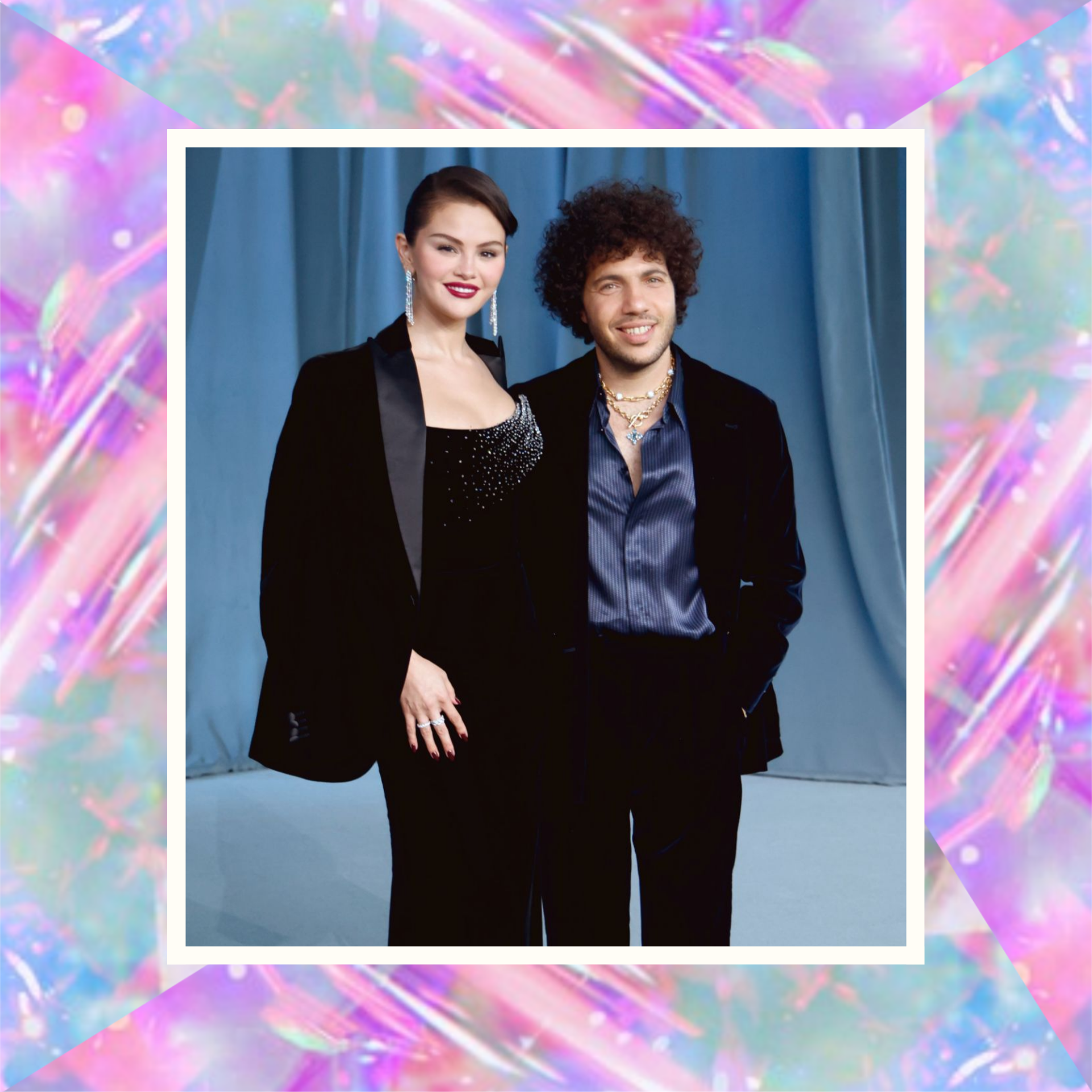 Бенни Бланко выглядел не менее стильно: он выбрал бархатный костюм в тон платью жены, дополнив его темно-синей атласной рубашкой без галстука и несколькими цепочками, придававшими легкую богемную нотку. Вместе они выглядели как дуэт, в котором каждый остается собой, но в то же время поддерживает другого. Их появление стало одним из самых обсуждаемых за вечер — возможно, потому что в их спокойной уверенности чувствовалась подлинность, а не просто глянец.