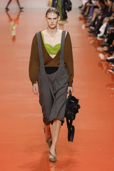 Привычные, но уже сильно приевшиеся нам сумки в черном и коричневом оттенках сменяются серыми аксессуарами! Идеальная замена, которая сразу придает правильное и нужное настроение наряду, выступая либо в качестве акцента, либо, наоборот, внедряется, дабы найти баланс в аутфите, как, например, у Loewe в коллекции весна-лето 2026 🤩
