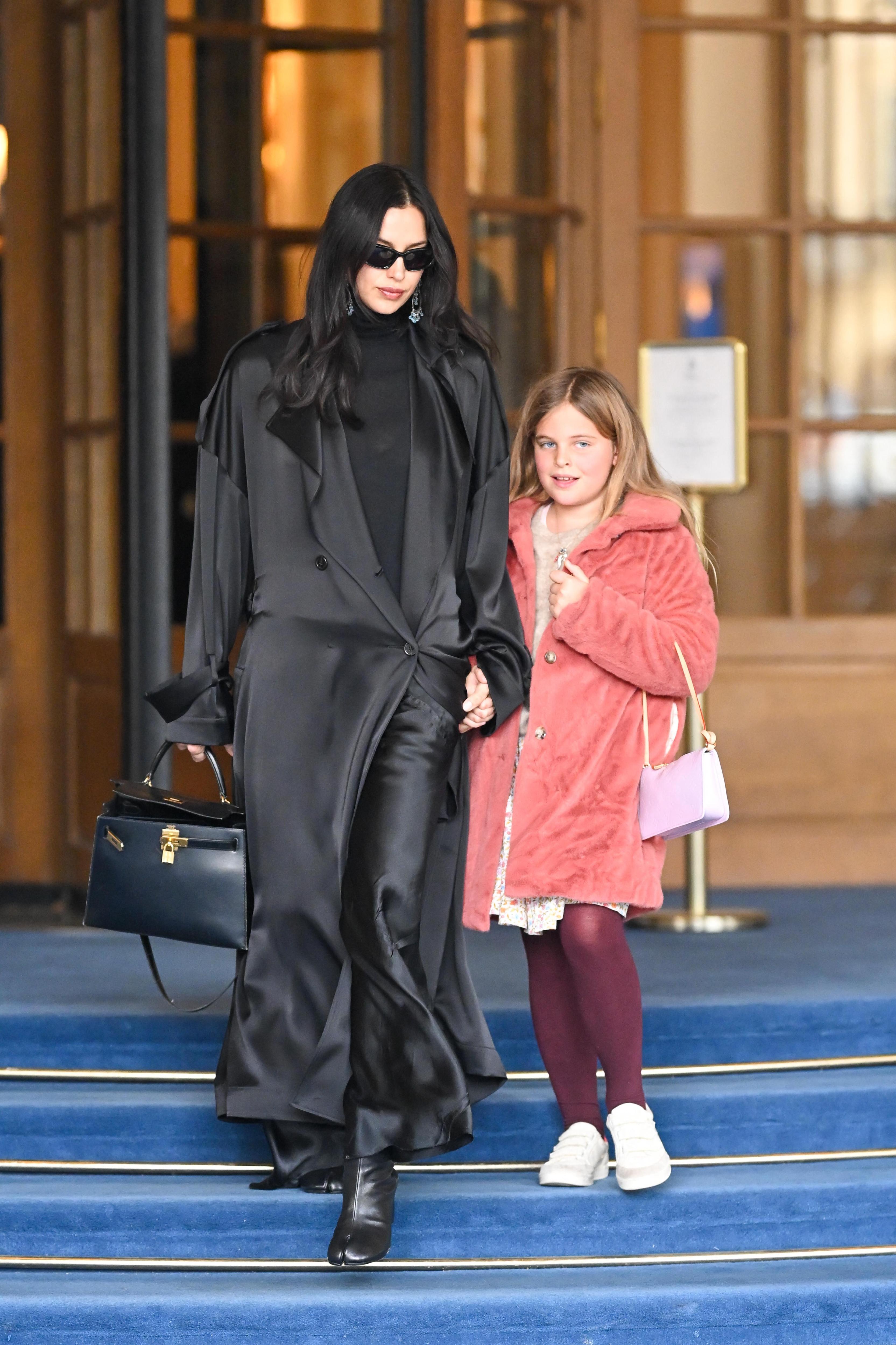 А совсем недавно, гуляя с дочерью, она и вовсе создала тотальный шелковый образ, надев черные струящиеся брюки и длинное пальто из того же материала. Получилось невероятно утонченно, красиво и просто идеально для теплой весны!
