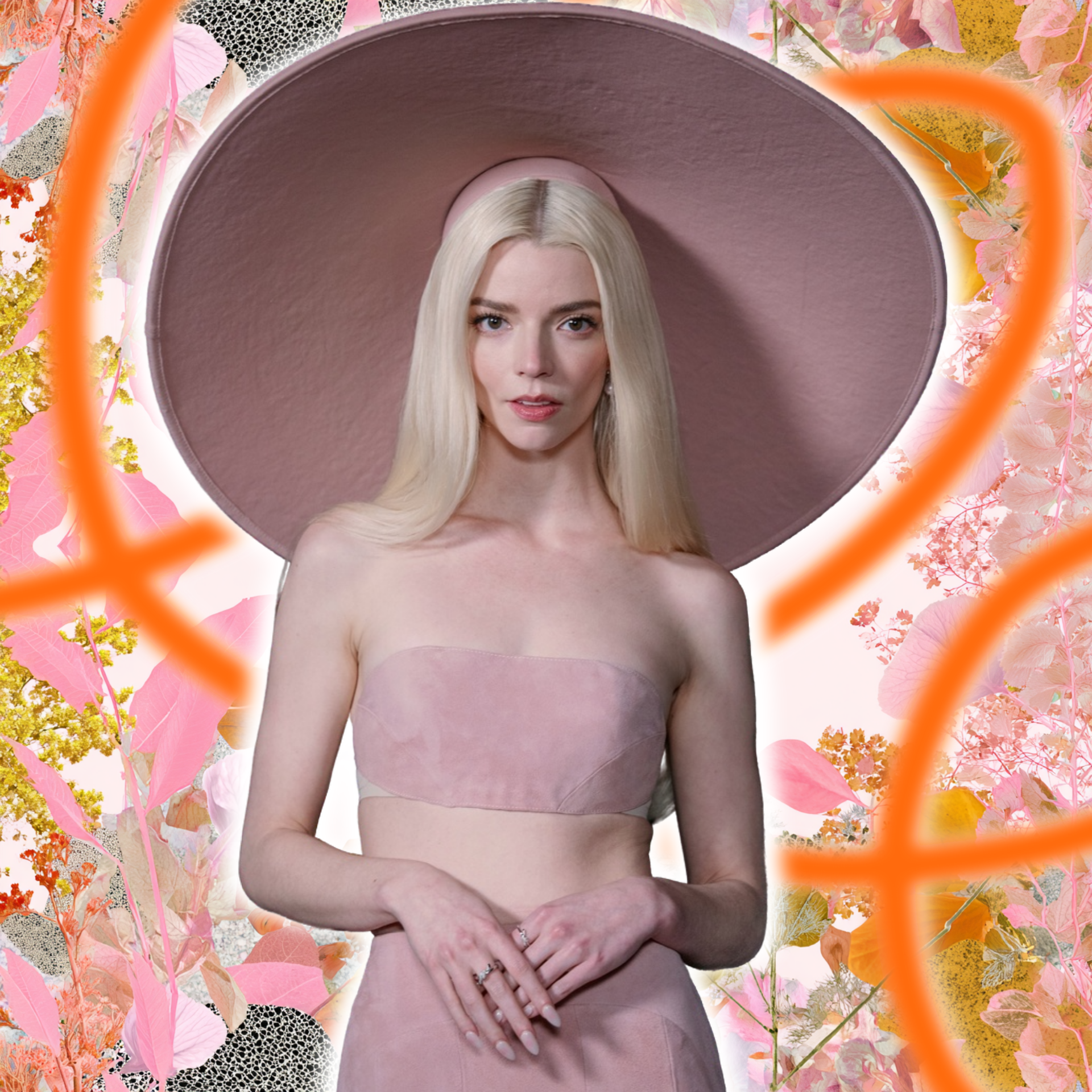 Выбор цвета тоже не случаен. Поклонники сразу провели параллель с ее героиней — принцессой Пич. В оригинале правительница Грибного королевства неизменно появляется в розовом, и Аня воссоздала визуальную отсылку в полной мере. Но даже если отбросить контекст, прием работает сам по себе: широкополая шляпа способна мгновенно придать лицу графичность, сделать черты более выразительными и добавить образу театральности, которая в повседневной жизни часто бывает так нужна для настроения.