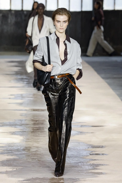 Зимой кожаные брюки были верным спутником в холоде, а весной становятся универсальной базой. Меняется только подача: вместо объемных свитеров — рубашки, тонкий трикотаж, майки и укороченные жакеты. Матовая кожа и прямой или слегка расширенный крой выглядят особенно актуально. Такие брюки добавляют собранности даже самым простым сочетаниям и не требуют сложных аксессуаров.