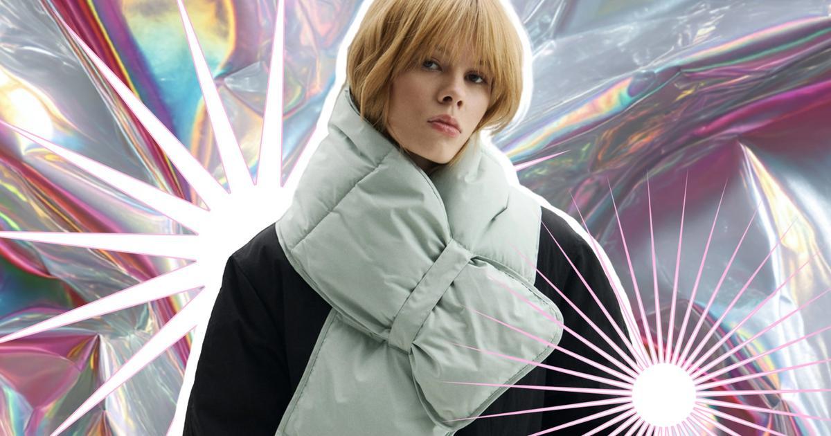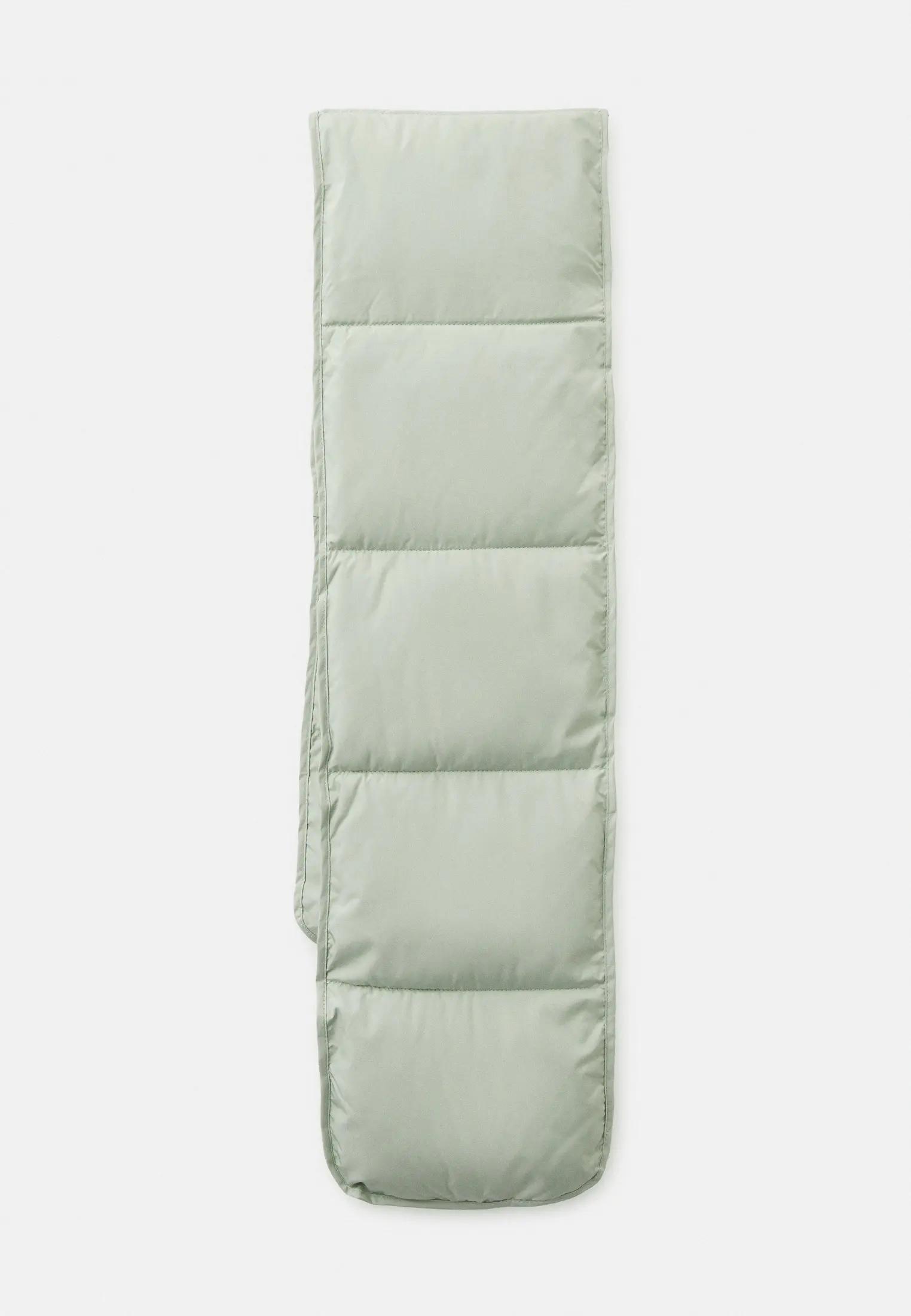 Самый «диковинный зверь» в этой подборке и одновременно самый эффектный. Стеганый шарф выглядит неожиданно, но именно за счет этого мгновенно делает образ сложнее. Он держит форму, не промокает и не превращается в мокрую тряпку после первого снегопада. Особенно хорошо такие шарфы работают с лаконичными пуховиками и пальто без лишнего декора. Если хочется мягкости — выбирай модель с мелкой стежкой, если акцента — смело бери объемный вариант.