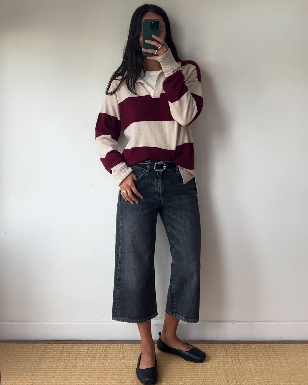 Джемпер-поло, напротив, тяготеет к мягкой элегантности. Он меньше говорит о стадионах и больше о тихих выходных на природе, о прогулках в центре города, о желании выглядеть собранно без усилий. Тонкий и теплый кашемировый вариант, например, можно надеть под пальто, оставив верхнюю пуговицу расстегнутой — и образ сразу выглядит расслабленно, но дорого.