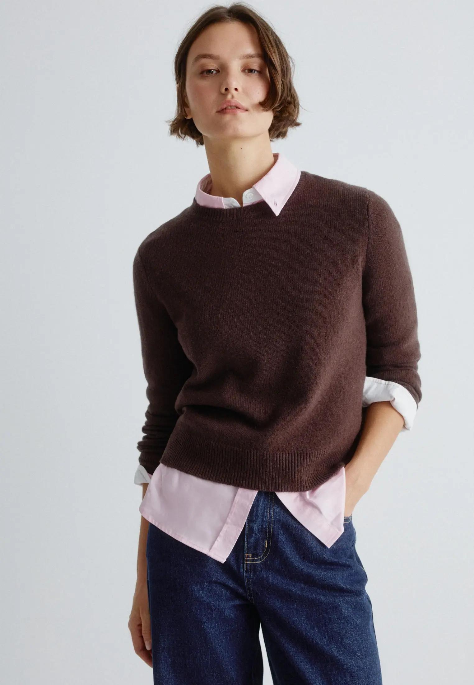 Лаконичный джемпер с круглым вырезом серого или коричневого цвета — в зависимости от того, в каких тонах выдержан твой основной гардероб. Его можно будет носить с чем угодно и не выглядеть слишком просто. Он станет тем самым спокойным фоном, который позволит другим вещам звучать громче.