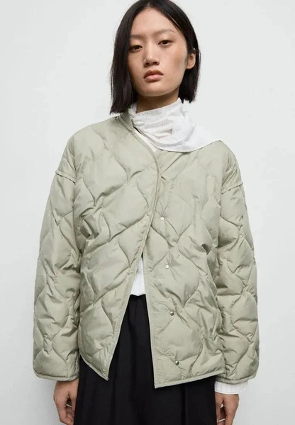 Аккуратная стеганая куртка — не толстая, миниатюрная, лучше даже на заклепках и без выраженного воротника. Максимально лаконичная база, которую весной можно будет накидывать поверх свитера и чувствовать себя максимально тепло. Кстати, цвет можно выбирать любой: коричневый, бежевый, хаки. Я, например, прикупила себе стеганку травяного цвета и ношу ее уже три года — выручает в любой ситуации: от похода на работу до прогулки с собакой. А проносить я ее собираюсь как минимум еще столько же! 😁