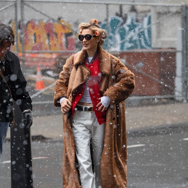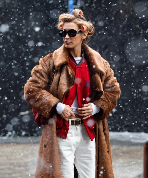 На фотографиях она выглядит одновременно мило и эффектно. Хадид вышла на улицу в длинной коричневой шубе из искусственного меха Mango, которая стала главным акцентом образа. Под шубой — белый лонгслив, красный университетский бомбер и свободные белые джинсы с коричневым ремнем, которые уже стали мечтой многих. Завершали образ черные кроссовки Carhartt WIP — удобные и практичные для зимнего города.