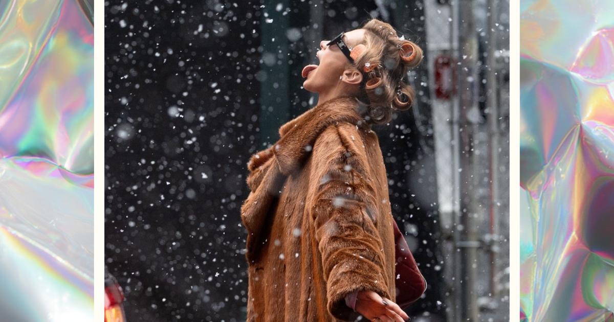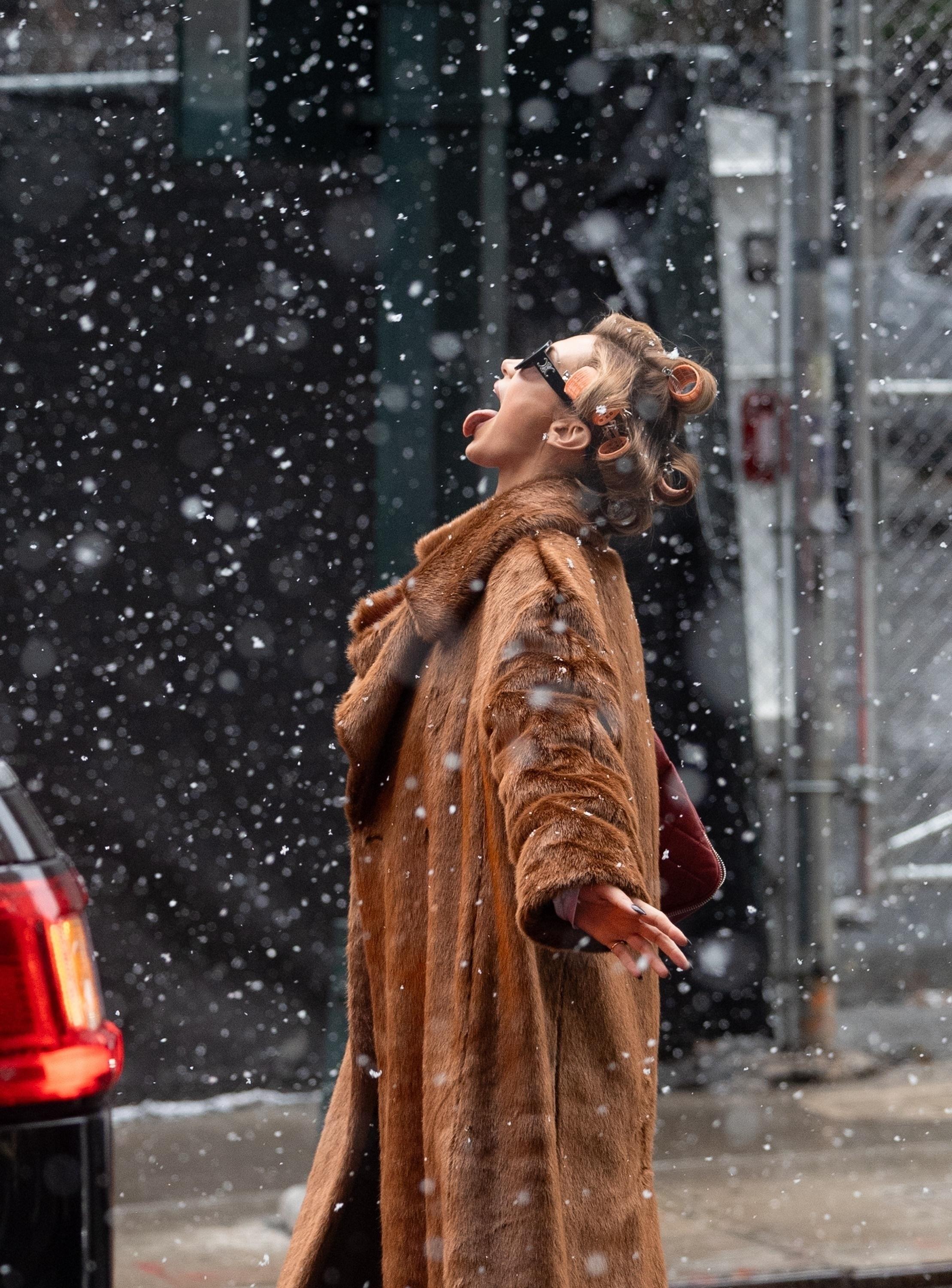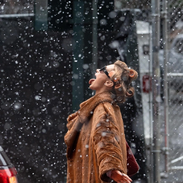 На этой неделе папарацци сделали серию снимков Хадид, которые мгновенно разлетелись по модным журналам и соцсетям. В самый разгар снежной бури модель отправилась на фотосессию, и вместо того чтобы прятать лицо от снега, она подняла взгляд и высунула язык, ловя снежинки прямо как ребенок, не позируя и не пытаясь выглядеть серьезно 😍
