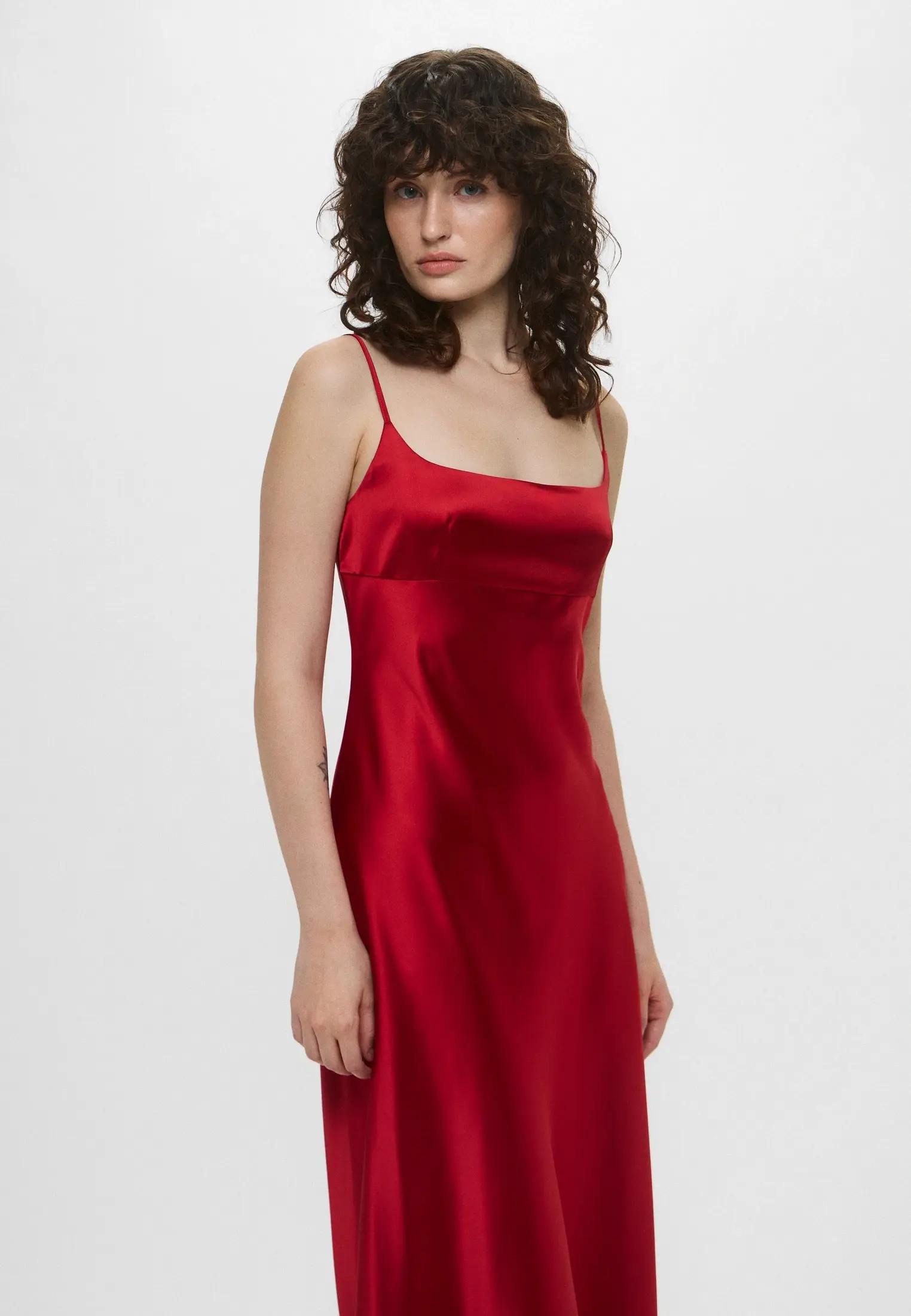 😍 Акцентное красное платье или костюм — лучший выбор для новогодней ночи. Надень длинное струящееся платье или свободный костюм в насыщенно-красном оттенке, чтобы полностью «утонуть» в самом любимом цвете хозяйки года. Если кажется, что это слишком ярко — добавь цвет акцентом: красный жакет, туфли или сумка уже сделают свое дело. Для тех, кому алый кажется слишком смелым, подойдет оранжевый — он сохраняет огненную энергию, но воспринимается мягче и теплее.