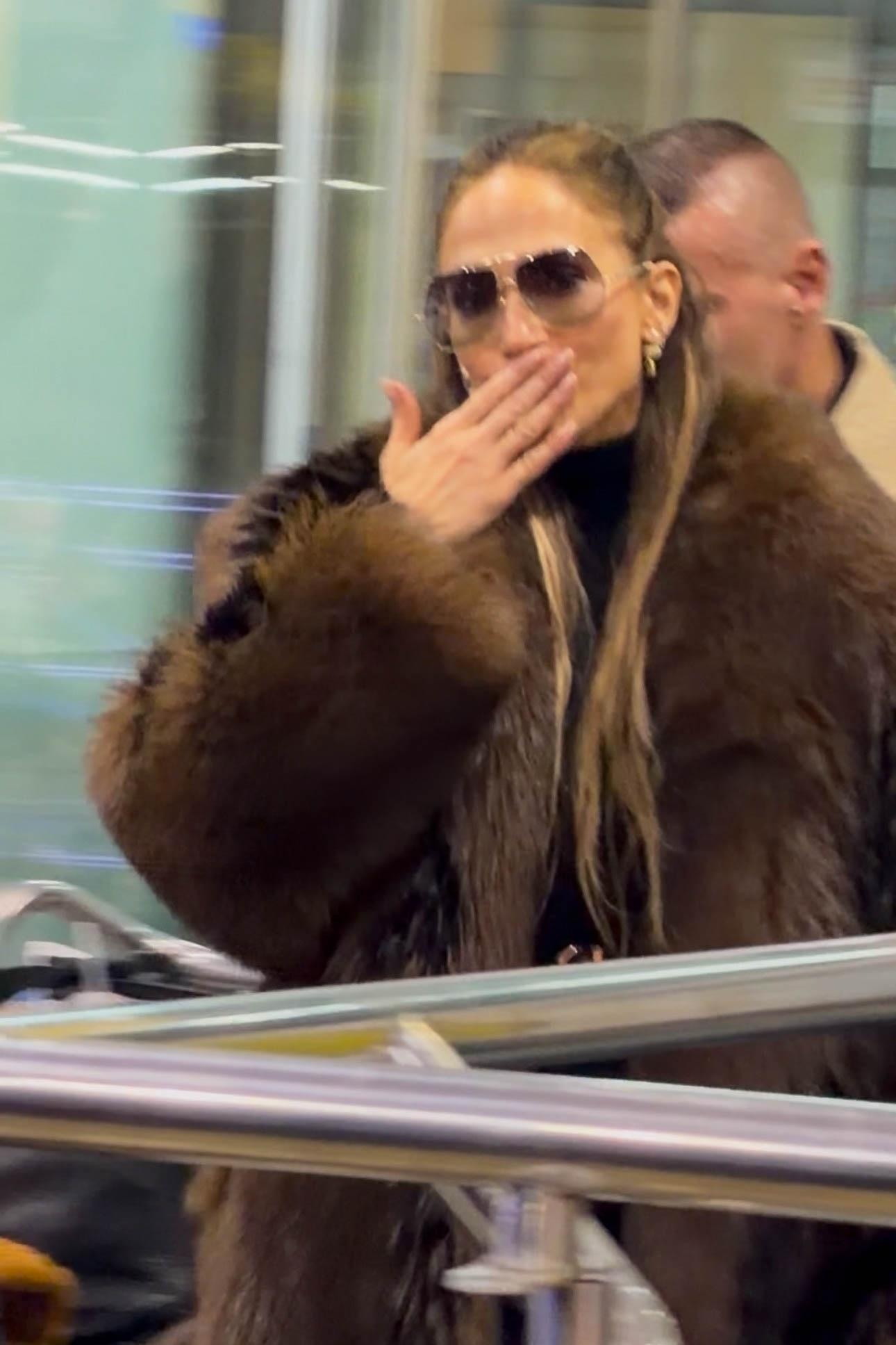 Но не меньше обсуждений вызвал и ее образ на обратном пути. Лопес появилась в аэропорту в длинной коричневой шубе, доходящей почти до щиколоток. Плотный мех визуально создавал мягкий кокон, а широкий воротник придавал уют и защищенность — то, чего мы все ищем зимой. Интересная деталь: по всей длине шубы располагались контрастные полосы, из-за которых верхняя одежда выглядела особенно выразительно, но не перегруженно.