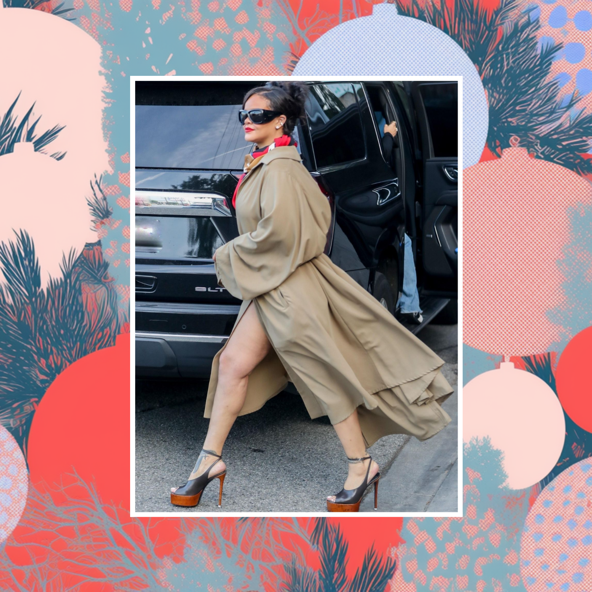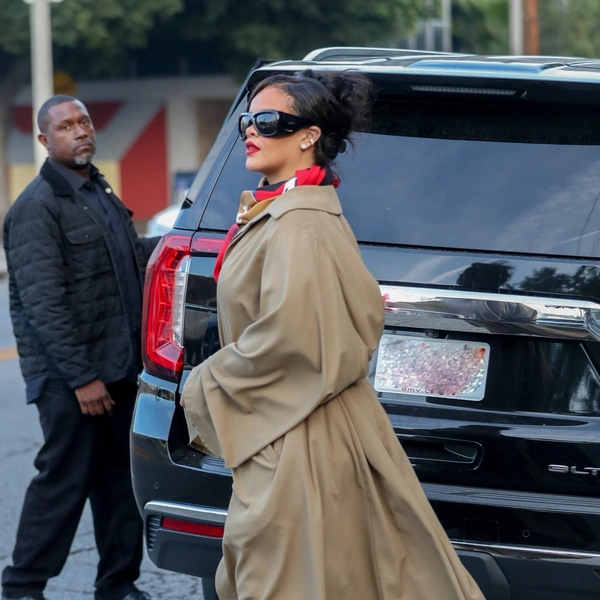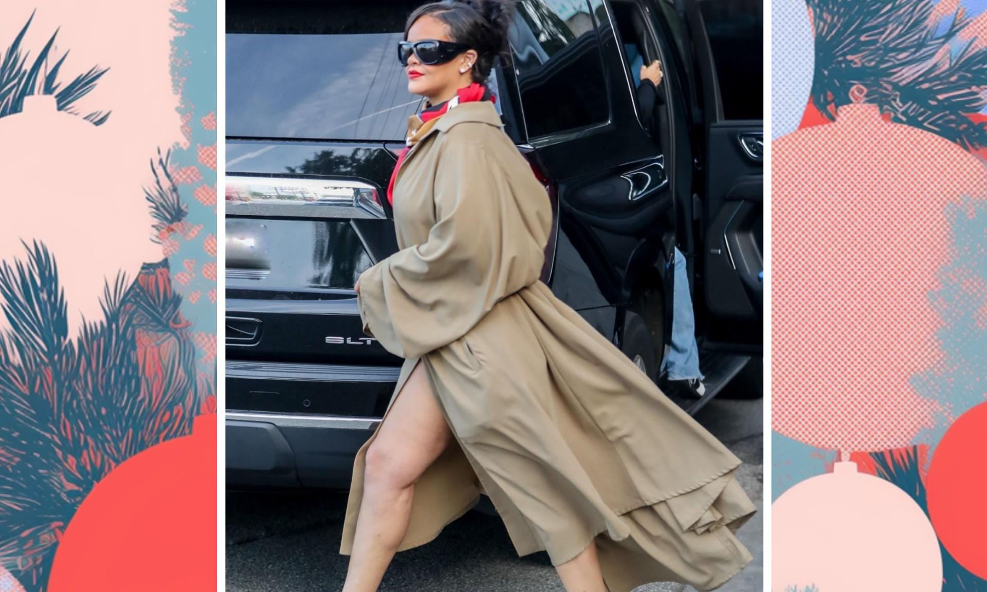 Образ Рианны хорош еще и тем, что не выглядит нарочито вечерним. Плащ вместо платья, минимум украшений, крупные солнцезащитные очки — все это создает ощущение свободы и непринужденности. Именно так сегодня и хочется выглядеть на праздниках: не перегруженно, не кричаще, но заметно и с характером.