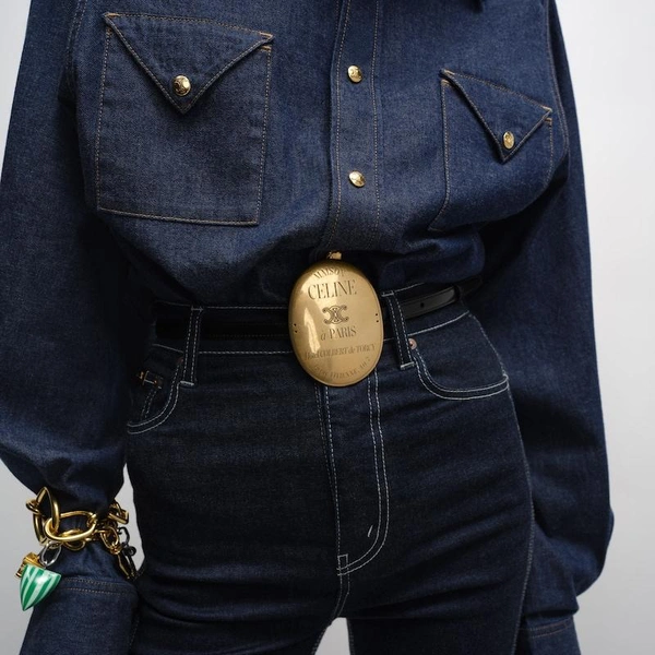 Не отстают и дизайнеры: в Celine, например, креативный директор дома Майкл Райдер взял ремни штурмом, украсив тонкие ремешки огромными золотистыми пряжками с названием бренда и адресом дома — получилось одновременно лаконично и очень выразительно.