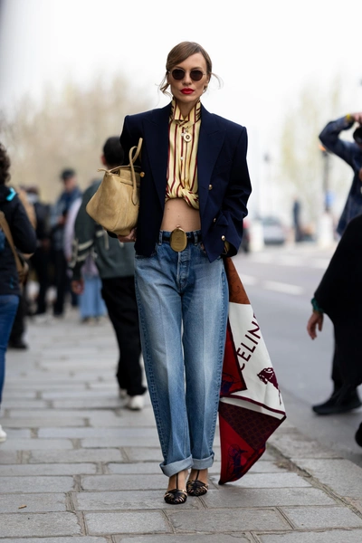 Самый простой способ — надеть его с любимыми повседневными джинсами. Берешь привычную комбинацию джинсов и футболки или рубашки, а в качестве финального акцента добавляешь трендовый ремень. Еще один супер актуальный вариант — поверх пальто или плаща. Талия сразу становится четче, а силуэт — интереснее. Особенно хорошо этот прием работает с объемной верхней одеждой: пояс собирает ткань и не дает образу расплыться в бесформенное пятно.