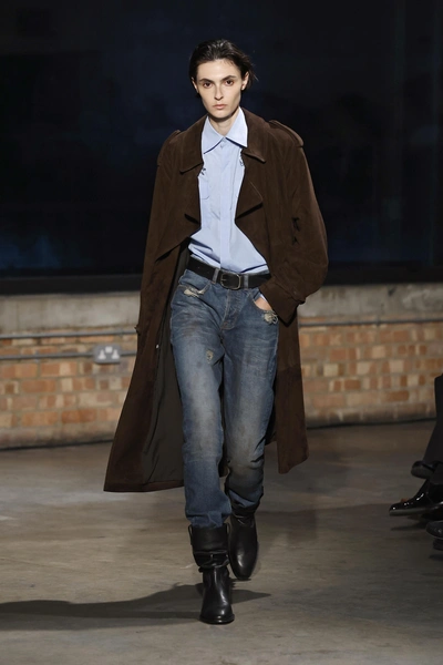Усталость от «идеальной» одежды накопилась. Гладкий деним без следов жизни больше не кажется универсальным решением. На его фоне джинсы с выцветшим эффектом выглядят честнее и живее: они сразу создают ощущение движения, времени и личной истории. Именно поэтому дизайнеры снова делают ставку на потертости — мягкие, неровные, иногда почти хаотичные.