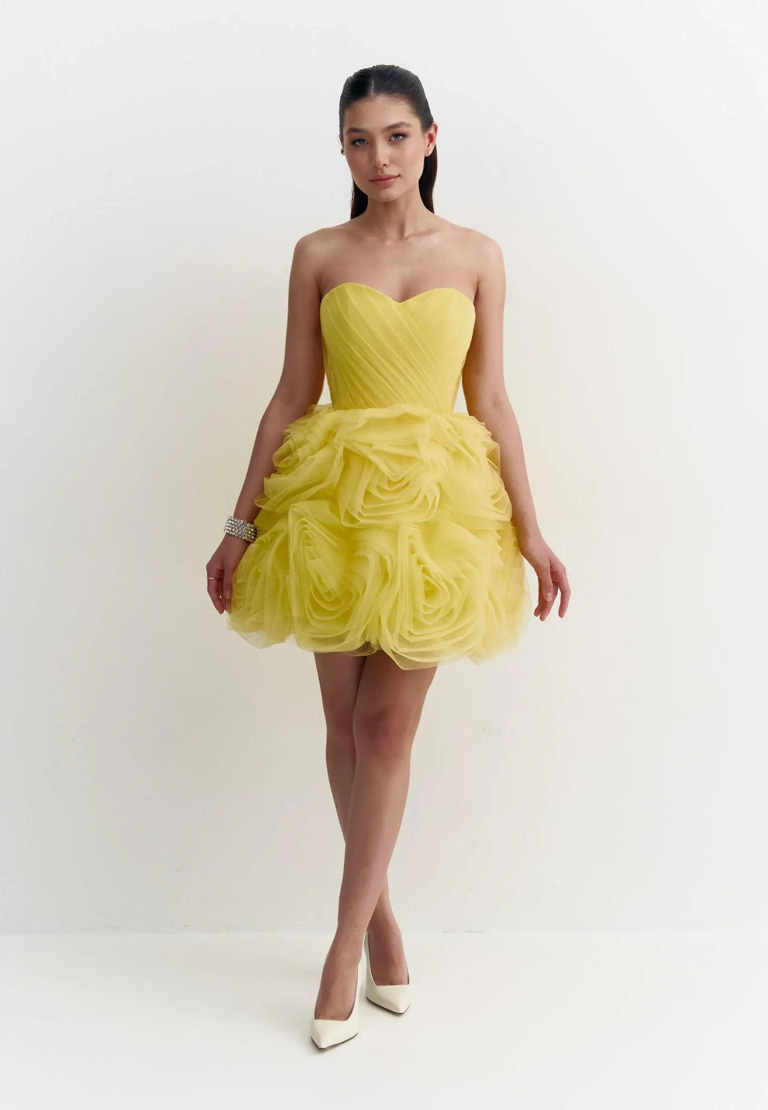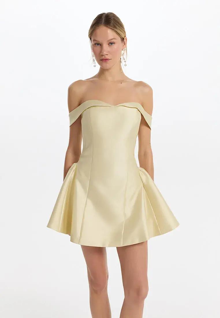 Если тебе нравится утонченность и уверенность Белль, обрати внимание на золотые и желтые платья. Они создают мягкое сияние в движении и эффект теплого свечения. Хорошо сработают модели с опущенными плечами, а также с драпировками по лифу или юбке — легкий намек на знаменитое бальное платье Белль.
