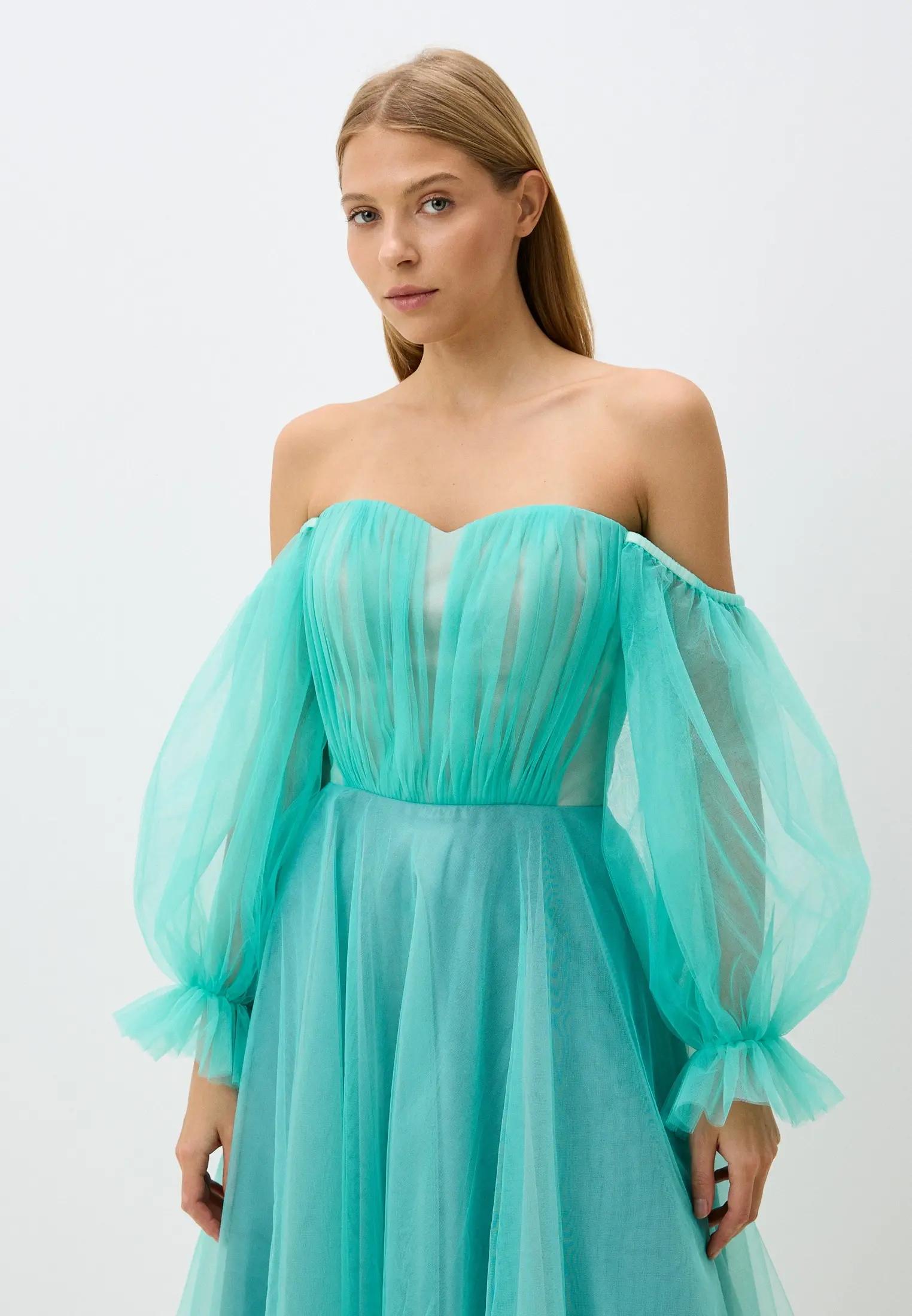 Для образа в духе Жасмин выбирай платья насыщенного бирюзового оттенка. Отлично подойдут модели с открытой линией плеч или изящной архитектурной драпировкой. Легкие ткани и струящиеся силуэты с тонкими металлическими акцентами придадут образу ощущение восточной сказки, оставаясь при этом современными. Чтобы завершить образ, выбирай крупные серьги и изящное ожерелье.