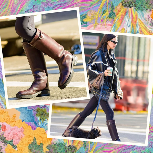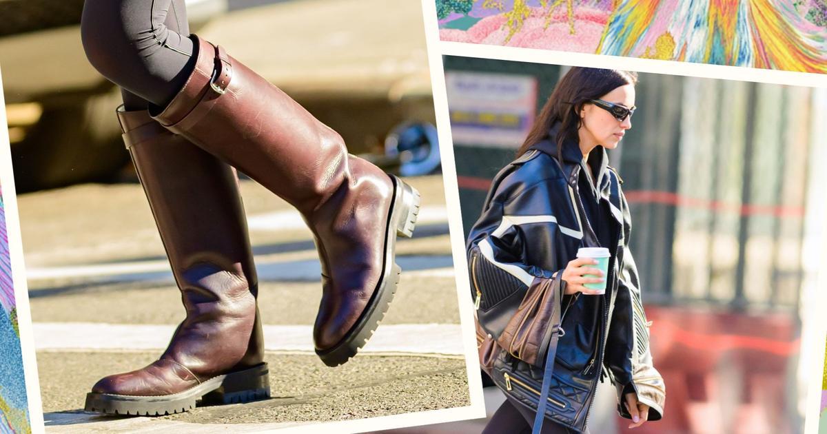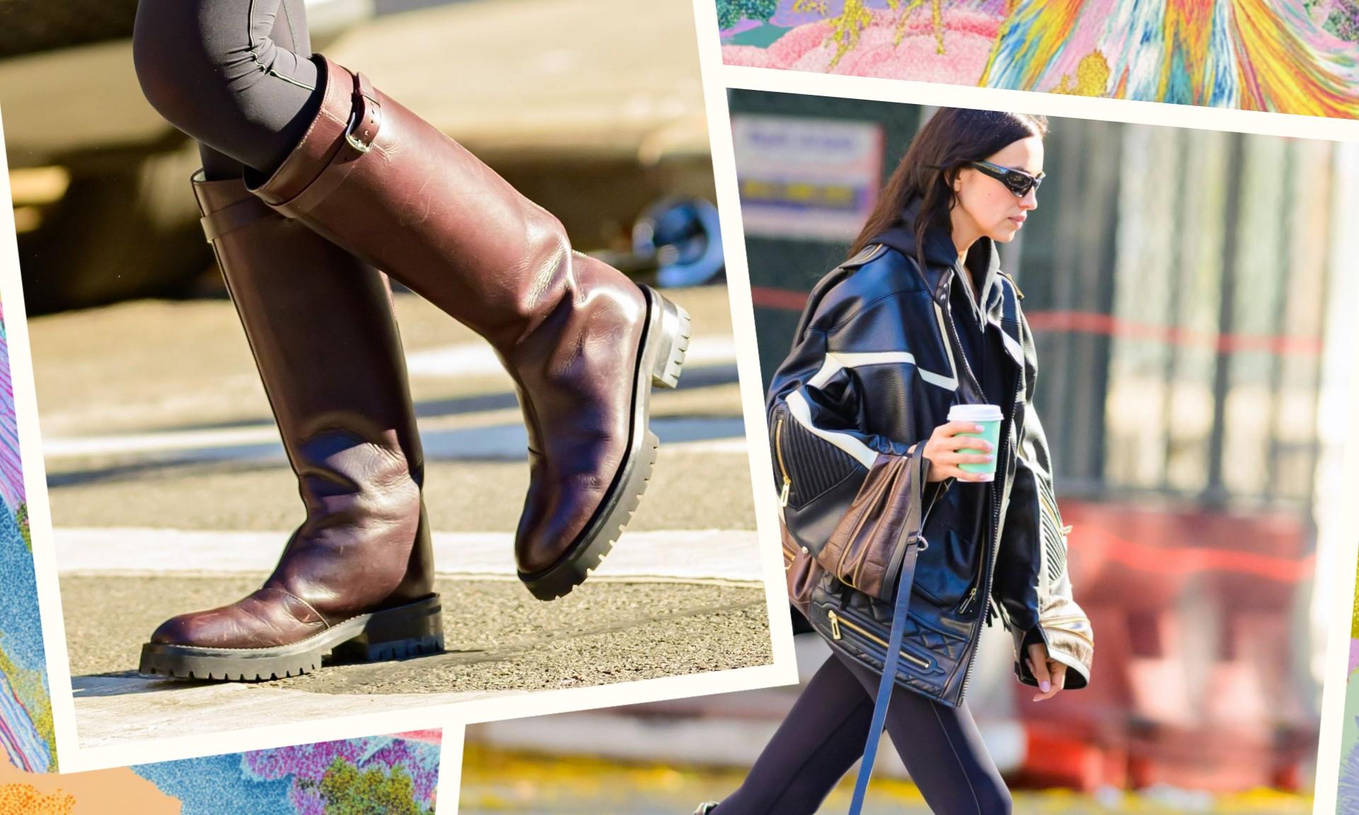 Обувь, напоминающая классические жокейские сапоги, выглядит утонченно и практично одновременно — идеальный вариант для холодного мегаполиса. Гладкая кожа, устойчивая подошва и аккуратная фурнитура делают пару универсальной: их можно надеть с пальто, шубой или даже с пуховиком. Впрочем, Ирина выбрала более смелое решение.