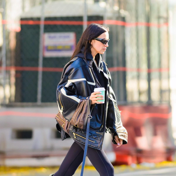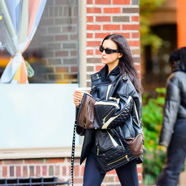 В последнее время Ирина все чаще выбирает именно комфортные городские комплекты, но даже в расслабленных луках ей удается сохранить ощущение модного контекста. Здесь нет случайных деталей: крупные солнцезащитные очки спортивной формы с изогнутыми линзами, свободный крой куртки, практичные легинсы — все работает на ту самую утонченную небрежность, которая давно стала ее визитной карточкой.