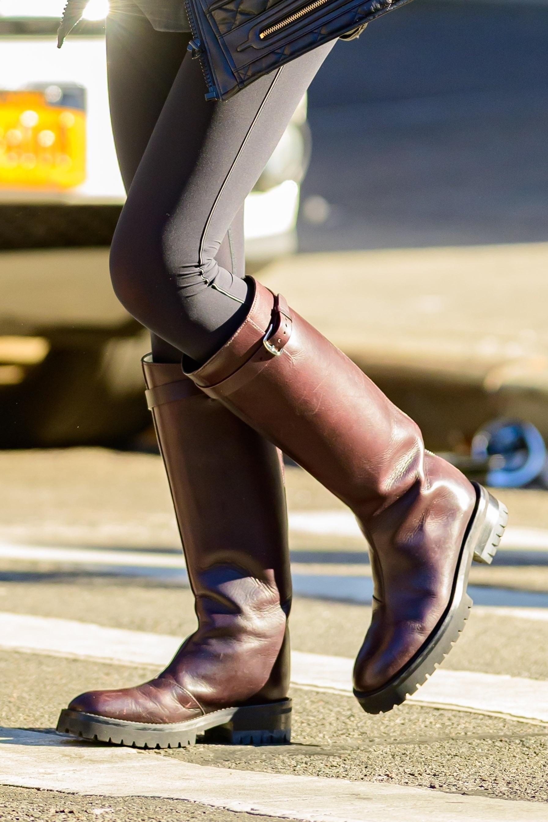 Зима еще не вступила в полную силу, но Ирина Шейк уже знает, какие сапоги станут самыми желанными этой холодной порой. На прогулке по Нью-Йорку модель появилась в образе, где сочетаются комфорт, функциональность и безупречное чувство стиля. При этом главное внимание привлекли именно сапоги — высокие, глубокого бордового оттенка, с ремешком на голени и массивной подошвой.