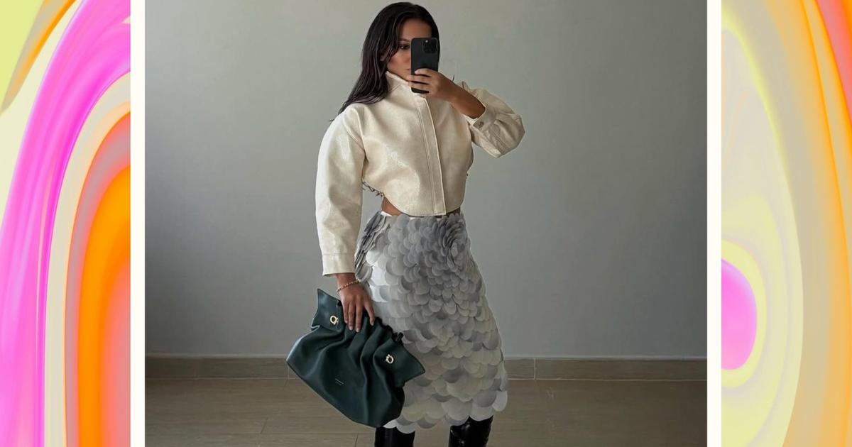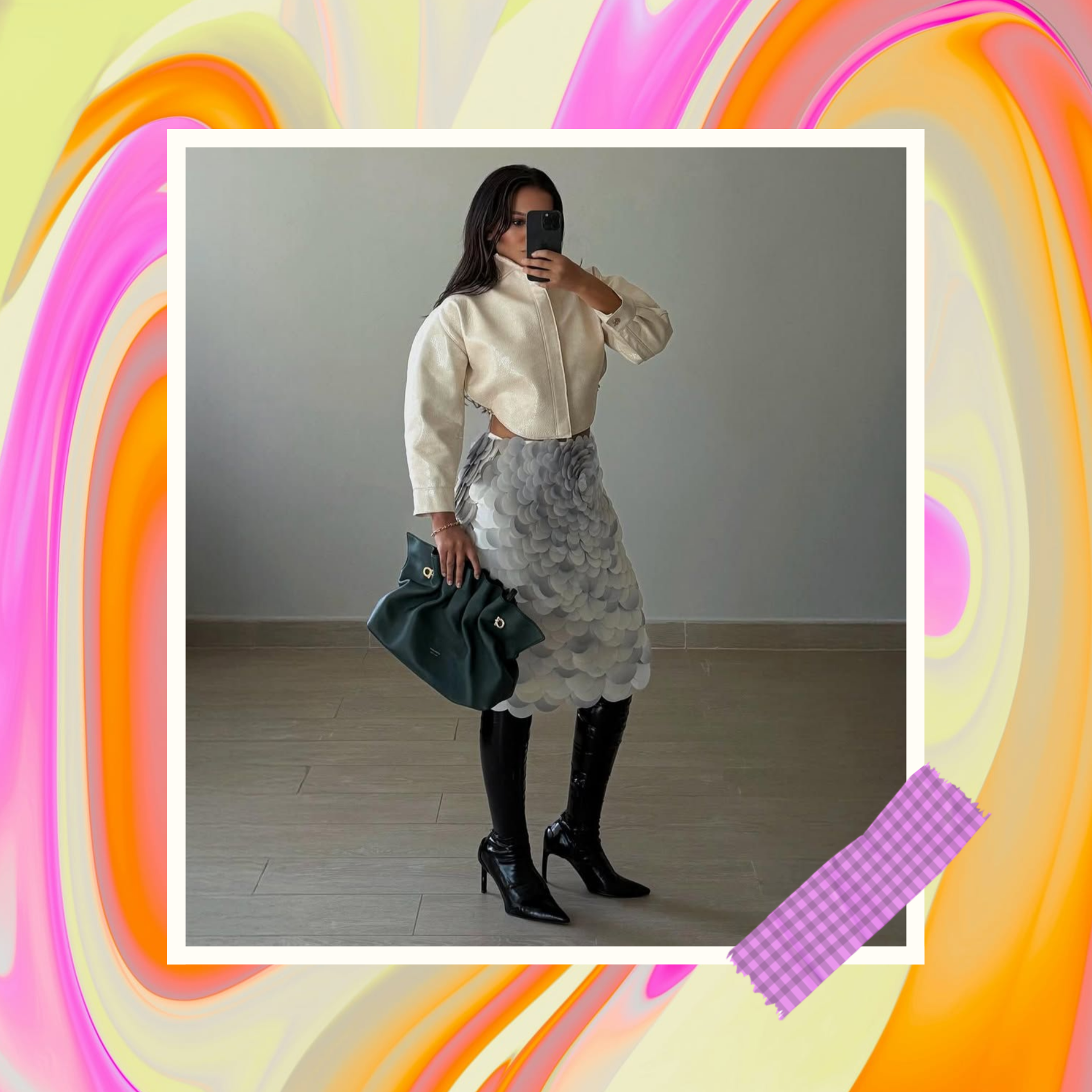 Секрет успеха таких сочетаний — в напряжении между материалами. Мягкая ткань юбки и плотная кожа сапог создают ту самую игру фактур, которая делает образ интересным. Даже базовая джинсовая юбка или вязаная миди моментально «звучат» по-другому, если добавить к ним сапоги с острым носком и глянцевой отделкой.