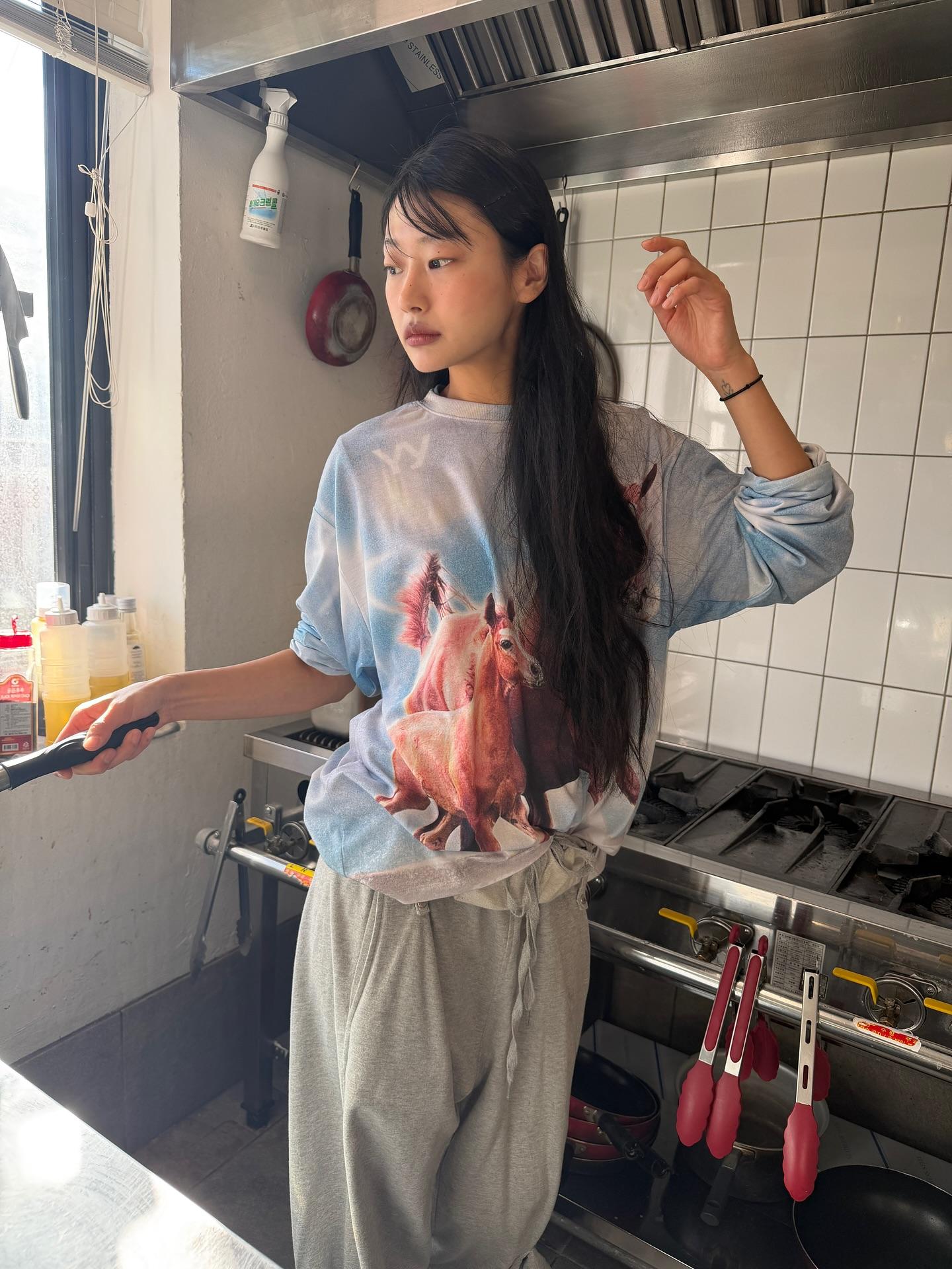 Забудь о забавных надписях и абтсрактных рисунках. В тренде — свитшоты, топы и футболки с котиками, собачками или зайчиками, которые выглядят как настоящие фотографии. Такие принты не стараются быть милыми в классическом понимании. Напротив, они несут в себе налог винтажной цифровой печати, чуть сюрреалистичный эффект гиперреальности. Изображение лошади на объёмном худи или котёнка на тонком лонгсливе становится личным высказыванием, своеобразным арт-объектом, который сразу притягивает взгляд и вызывает улыбку.