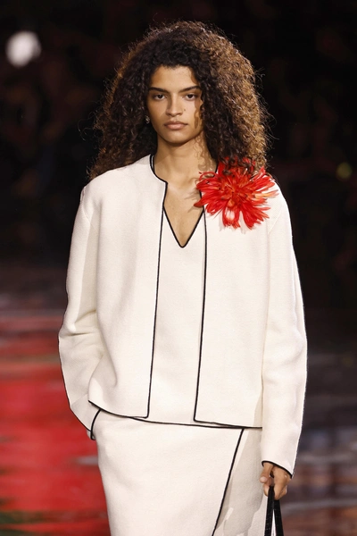 Пышные тканевые броши в виде цветков по-прежнему актуальны. Только взгляни, как красиво выглядит образ из коллекции Chanel: молочный строгий костюм с черным кантом, дополненный сбоку на жакете крупной брошью в виде пышного красного соцветия астры. Одна деталь — и строгий офисный лук превращается в произведение искусства. Брошь можно носить не только на жакете, но и на пальто, на вороте рубашки, на сумке. Чем неожиданнее место, тем интереснее результат 😉
