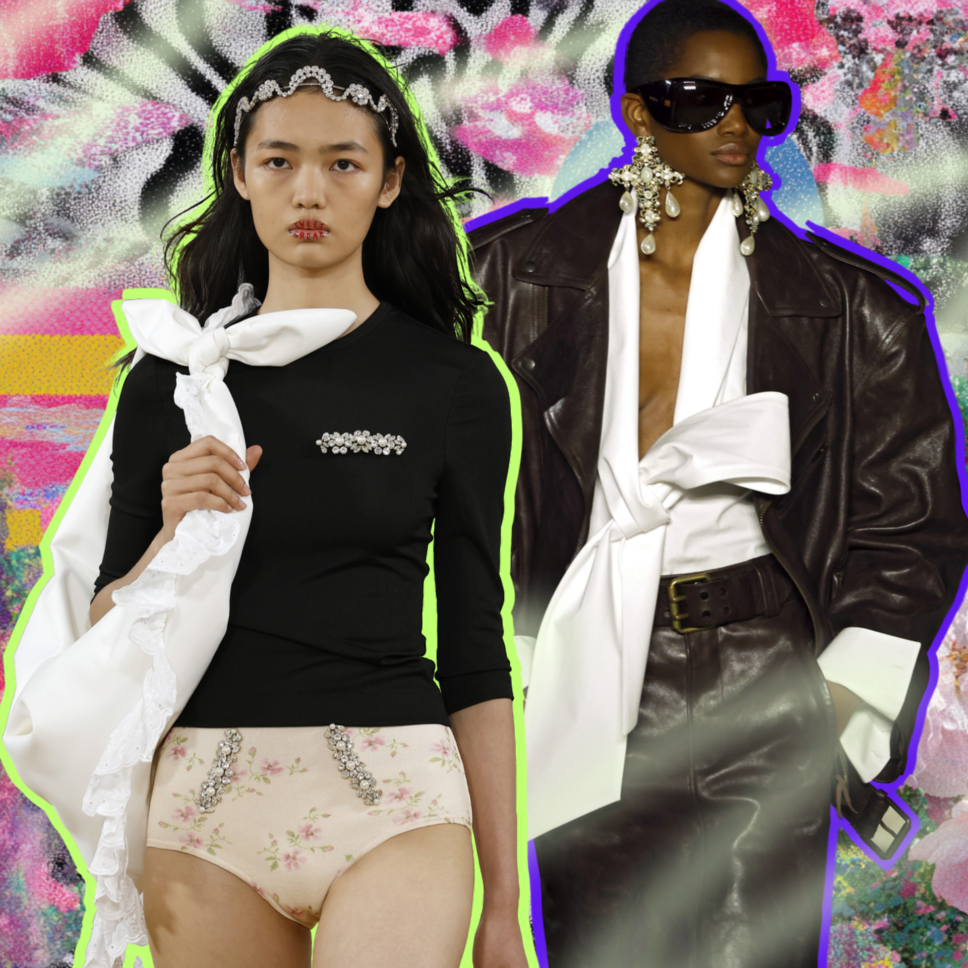 И пожалуй, самый неожиданный и неочевидный пункт этого списка — обычные шнурки! Да-да, взять на вооружение эту идею нас вдохновляет все тот же Simone Rocha. Шнурки с легкой руки дизайнера превратились в отличные пояса, очерчивающие талию, а также в броши — их завязывали в бантики и крепили на жакеты, иногда по несколько штук сразу. Выглядит очень круто, согласна? А учитывая доступность материала… В общем, точно стоит попробовать! Шнурки могут быть кожаными, атласными, хлопковыми — любыми. Главное — подойти к делу с фантазией 🤩