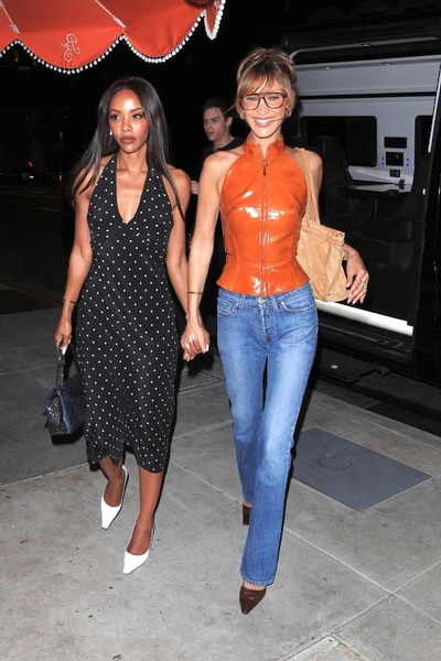 Что важно: оранжевый — цвет требовательный. Он не прощает случайных сочетаний и плохо дружит с кислотными или чересчур пестрыми соседями. Белла Хадид показывает идеальную формулу: один яркий элемент, все остальное — спокойная база. Голубые джинсы, коричневые туфли, бежевая сумка и минимум украшений. Именно в такой компании оранжевый перестает быть вычурным и выглядит очень современно.