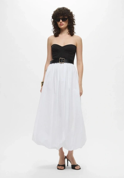 Сегодня юбка-баллон — это совсем не карнавальный элемент. Современные модели работают с пропорциями изящно и графично. Они могут быть выполнены из однотонных тканей, бархата, плотного хлопка или тафты, а длина варьируется от мини до макси. Днем такая юбка отлично подойдет для очаровательного образа в стиле бэби-долл, а вечером легко превратится в часть нарядного и запоминающегося ансамбля.