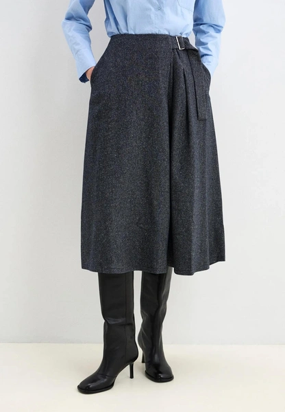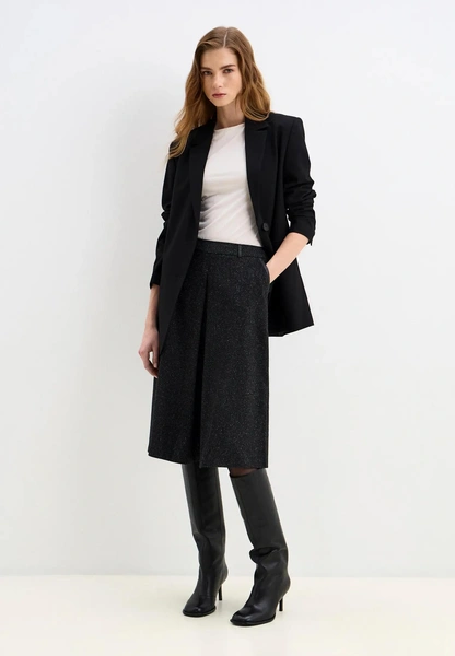 Главное модное правило сезона — не открывать живот. Ни полосочки кожи! Все внимание смещается на форму и линию. Возьми классический длинный теплый джемпер или рубашку и заправь прямо в юбку с заниженной талией. Получается необычный силуэт, где торс визуально удлиняется, а пропорции тела кажутся более расслабленными и современными. Да, это немного смело — но в этом и есть суть тренда.