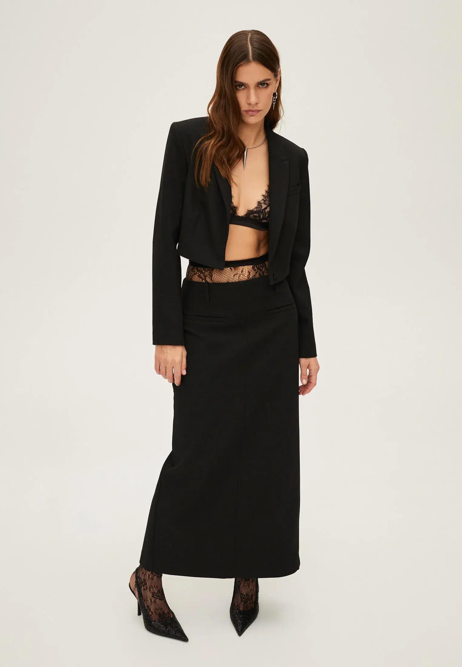 Да, в этом тренде можно уловить отголоски коллекции Miu Miu весна-лето 2022, когда заниженная талия вернулась с ультрамини-юбками и едва заметными топами. Но в 2025 году все иначе. Это не про дерзкий вызов и не про ностальгию по нулевым. Скорее, перед глазами вспыхивает образ Кэролайн Бессетт-Кеннеди, а не Пэрис Хилтон — чистые линии, скульптурные силуэты и уверенность, лишенная нарочитой сексуальности.