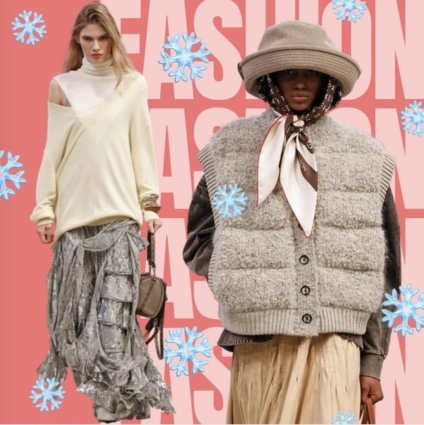 Практичность — одна из сильных сторон коллекции. Жилеты здесь играют ключевую роль: объемные, теплые, функциональные, они легко вписываются в многослойные образы. Их носят поверх свитеров, платьев, рубашек и даже тонких пальто.
