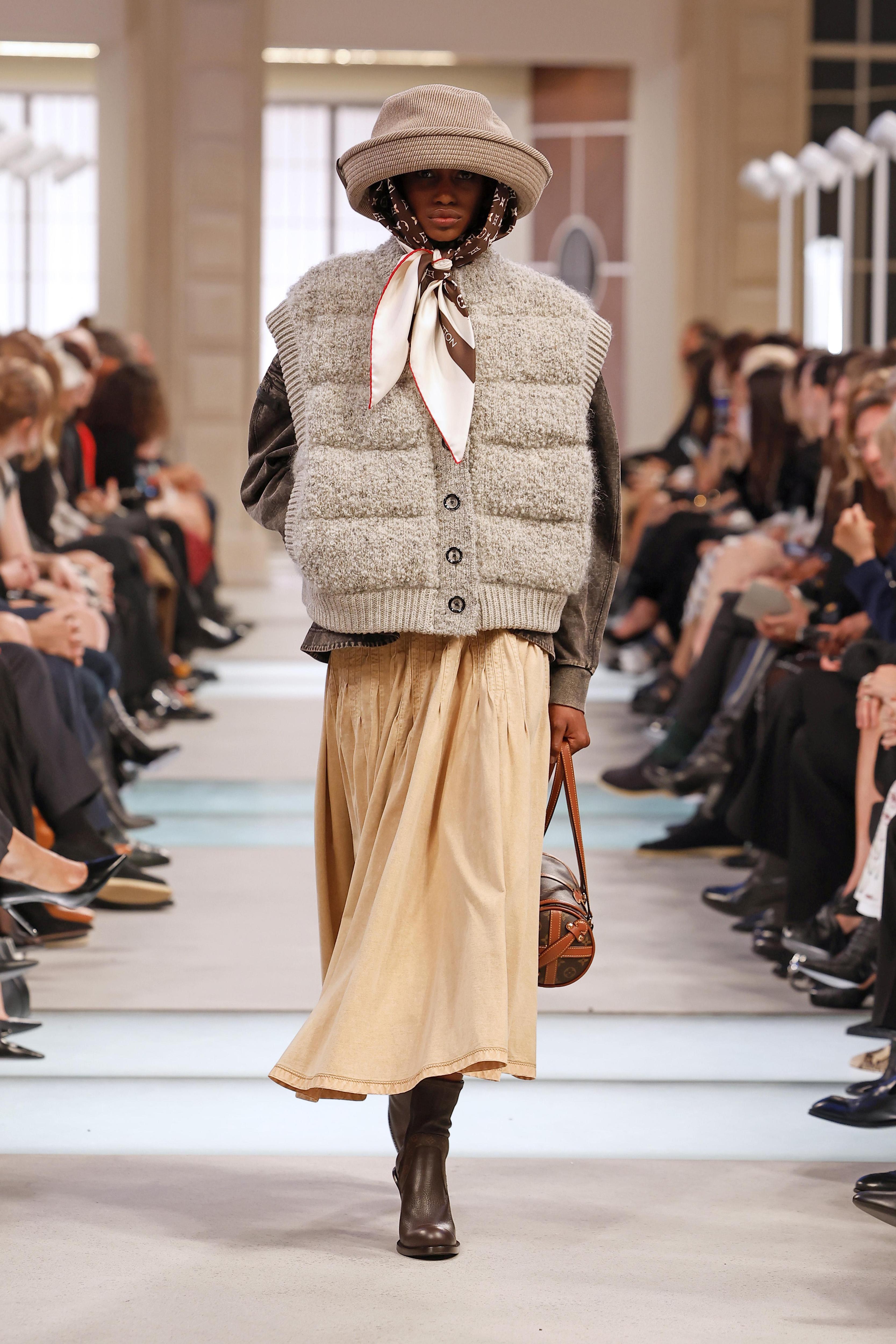 Джемперы с V-образным вырезом в коллекции Louis Vuitton сочетали с юбками и многослойными комплектами. Такой пуловер легко адаптировать под зиму. Он работает и как самостоятельная вещь, и как часть сложного образа. Выбирай струящиеся модели большого размера, чтобы при желании эффектно обнажить плечо, как на подиуме.