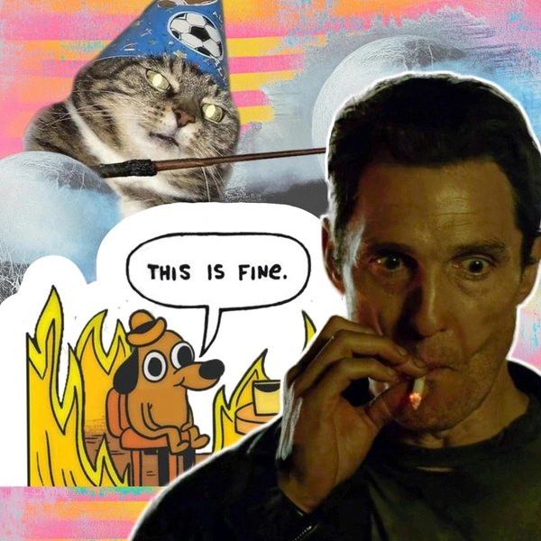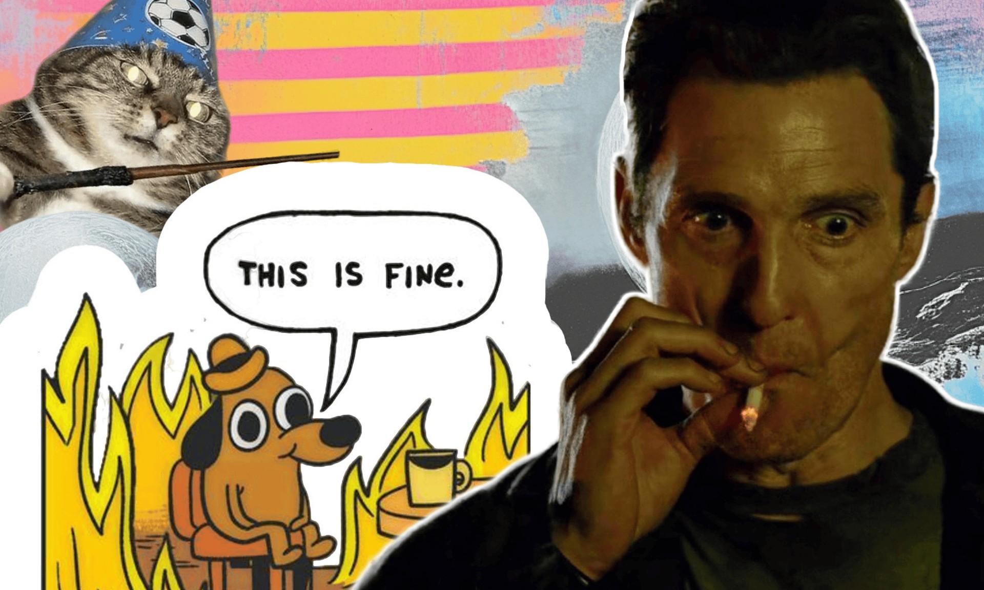 Кто бы мог подумать, что тот мем из сериала HBO «Настоящий детектив» с Мэттью Макконахи, который мы используем до сих пор, стал вирусным еще десять лет назад. Чаще всего герой актера Раст Коул, курящий сигарету, используется для того, чтобы показать свой экзистенциальный ужас, тревогу или сильную увлеченность темой.