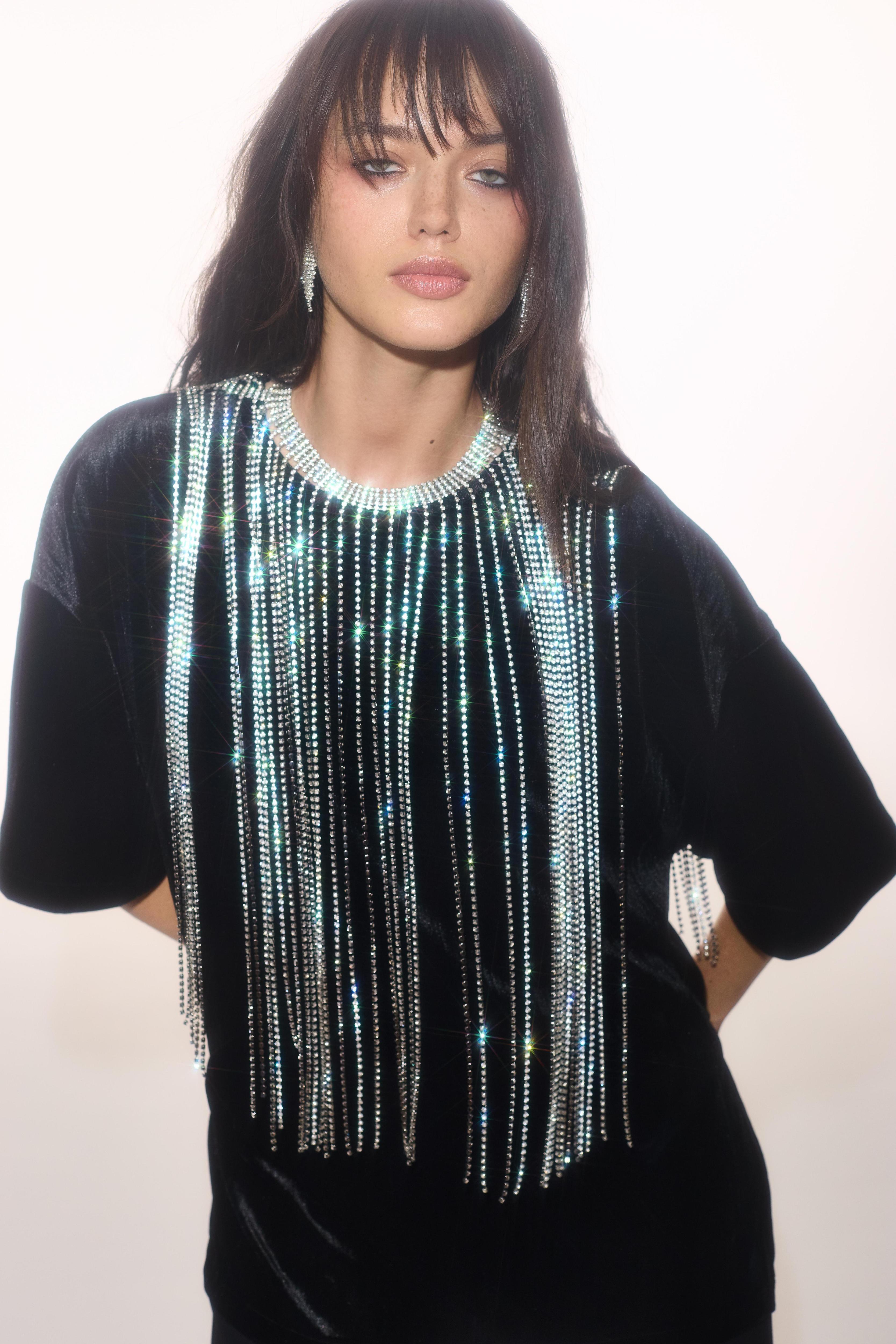 Не обошлось и без 3D элементов: для тех, кто жаждет привлекать внимания, бренд предложил платья, топы и даже джинсы с объемными 3D-цветами. А финальными штрихами могут стать ободки с вуалью, сумки с бахромой из пайеток, украшения и туфли с перьями и стразами.