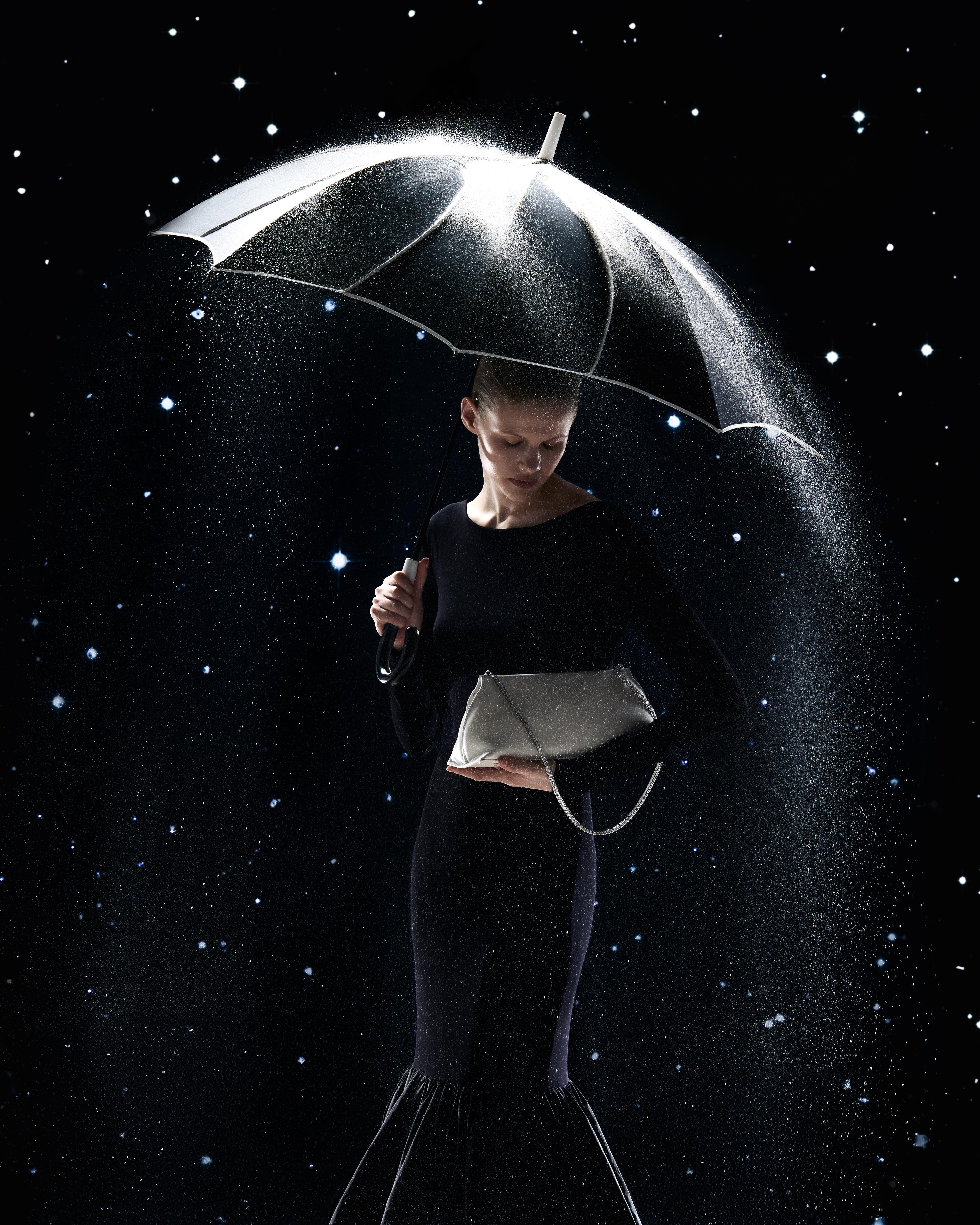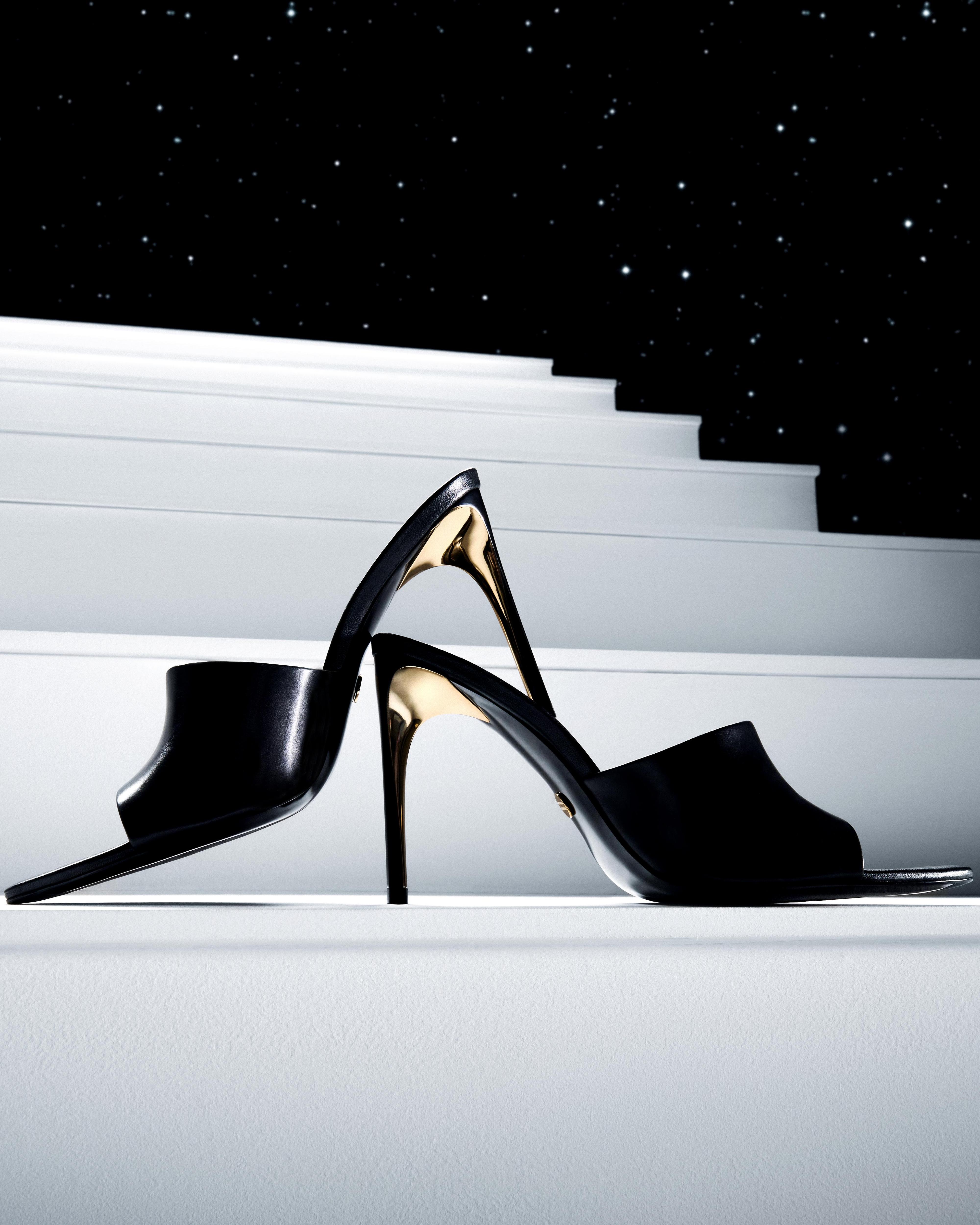 Благодаря подобным сочетаниям в коллекции, где можно найти туфли и босоножки, балетки и слингбэки, ботильоны и сапоги на выверенных колодках и каблуках разной высоты, далекий космос смог встретиться с земной женственностью, а чувственный блеск страз на щиколотках дополнил инновационные материалы.