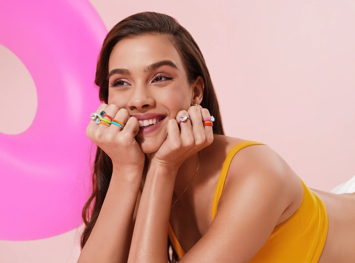 Серебро в кольцах, серьгах и колье символизирует чистоту и свежесть, а яркая эмаль становится палитрой радости, которая способна передать твое настроение. Та же функция и у разноцветных камней (топазов, аметистов и фианитов), которые не только добавляют блеска и игривости, но и подчеркивают радостное настроение.