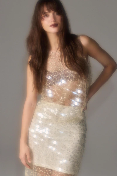 Любители новогодней классики, которая обычно представлена пайетками, тоже смогут собрать образы по вкусу. При этом за счет лаконичных силуэтом немного блеска удастся добавить даже повседневным аутфитам. Капсула из сатина и вельвета позволит поиграть с фактурами, а игривое кружево поможет найти баланс между комфортом и изысканностью.